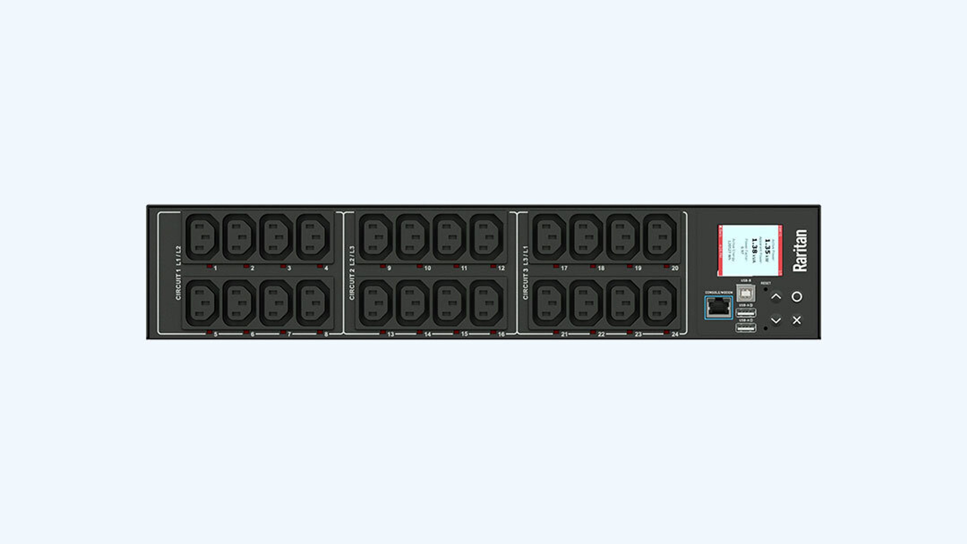 1PH, 200-240V AC, 30A (24A rated), 1 line, input type: L6-30P, output type: L6-30R, 0U, high resolution color display, Ethernet, serial, 2x USB-A, USB-B and sensor connections