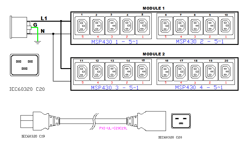 1PH, 208V AC, 16A (16A rated); 20 outlets: 20x C13; plug: IEC 60320 C20 (Rear feed), 3.3kVA; Outlet Metered, 2U horizontal PDU, SecureLock ready