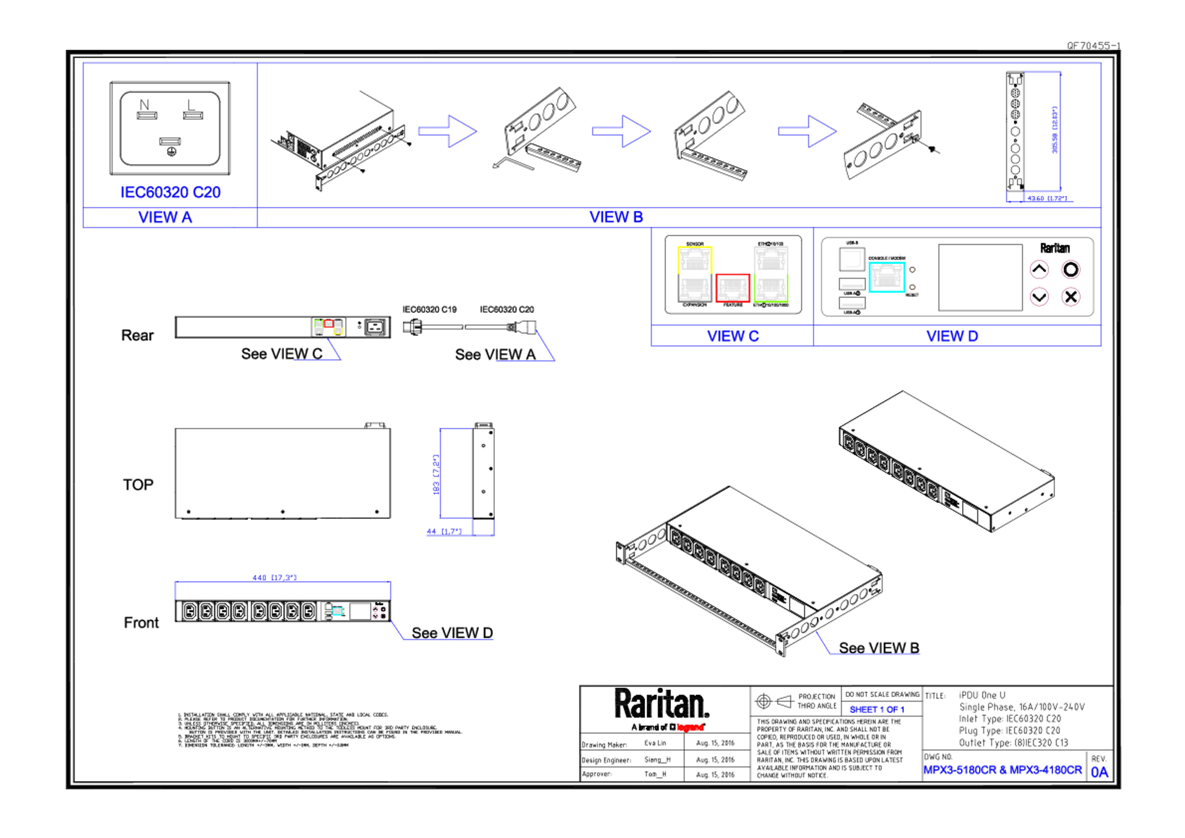 Raritan PX3-4180CR 1PH 208V AC 16A 8 outlets 1U PDU
