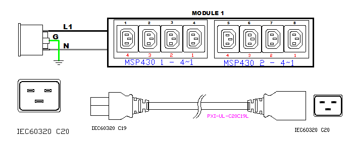 1PH, 208V AC, 16A (16A rated); 8 outlets: 8x C13; plug: IEC 60320 C20 (Rear feed), 3.3kVA; Outlet Metered/Switched, 1U horizontal PDU