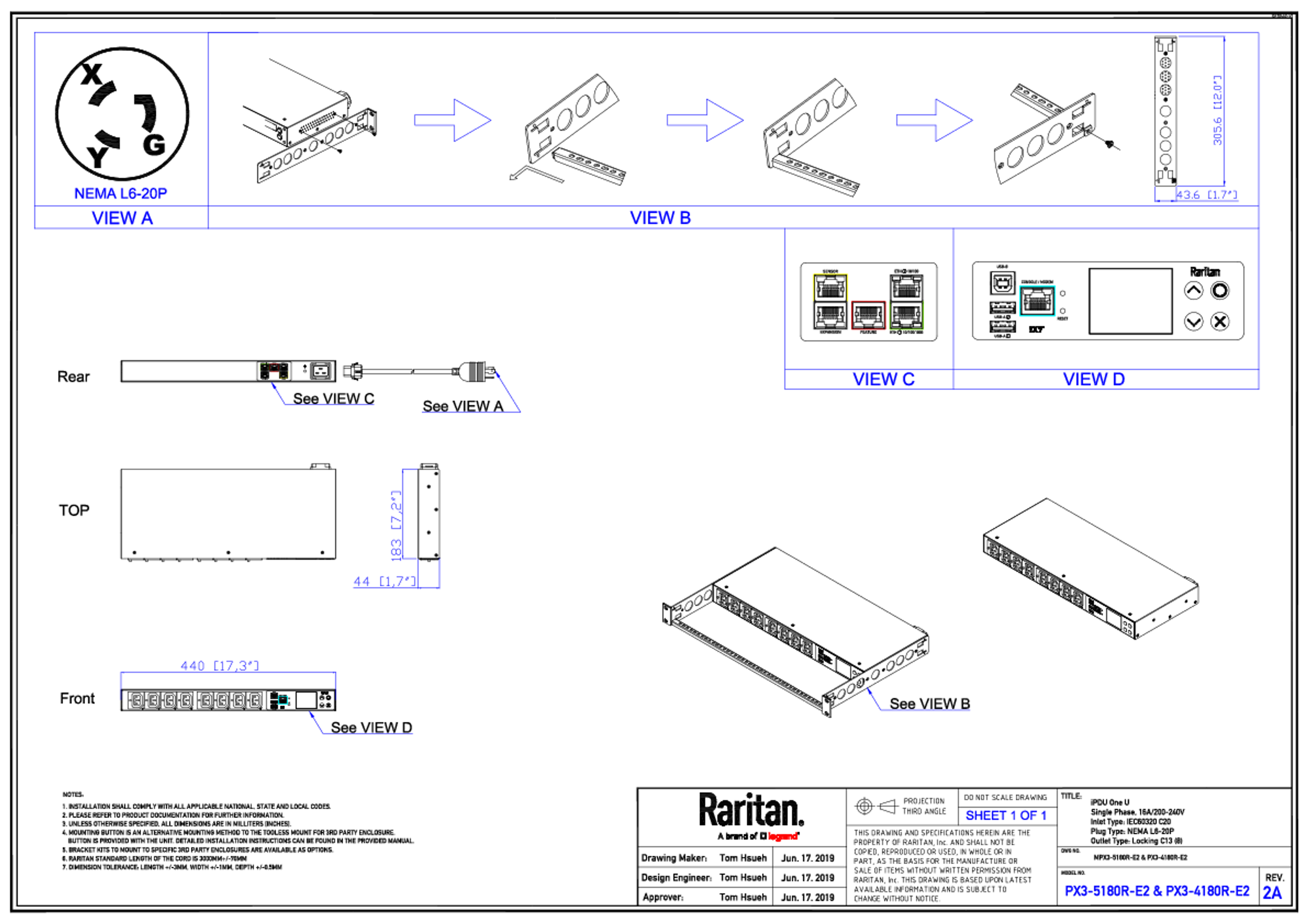 1PH, 208V AC, 20A (16A rated); 8 outlets: 8x C13 Locking; plug: NEMA L6-20P (Rear feed), 3.3kVA; Outlet Metered, 1U horizontal PDU