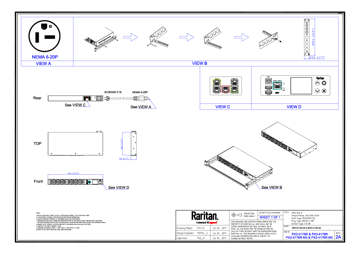 Raritan PX3-5176R 1PH 208V AC 20A 8 outlets 1U
