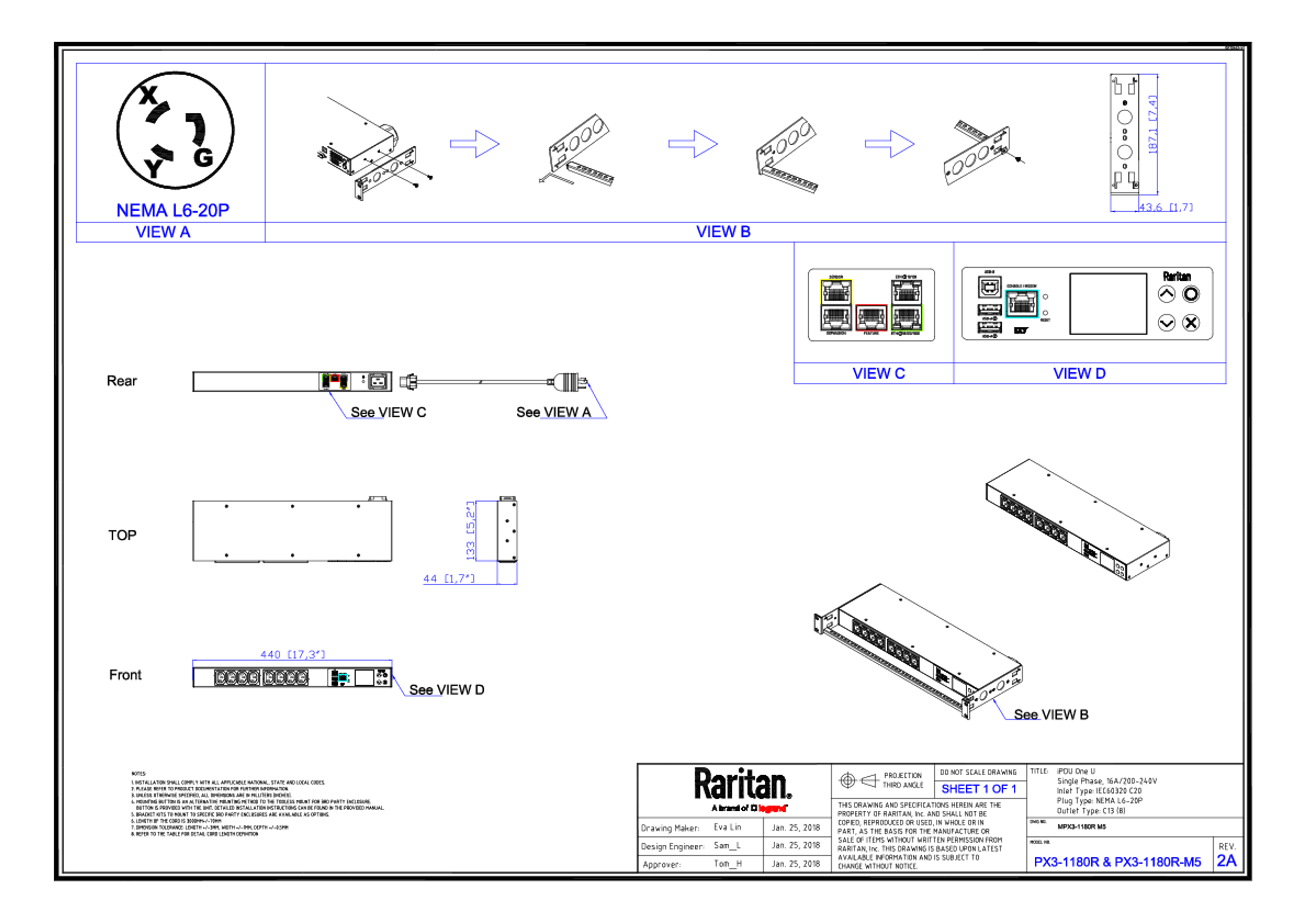 Raritan PX3-1180R 1PH 208V AC 20A 8 outlets 1U