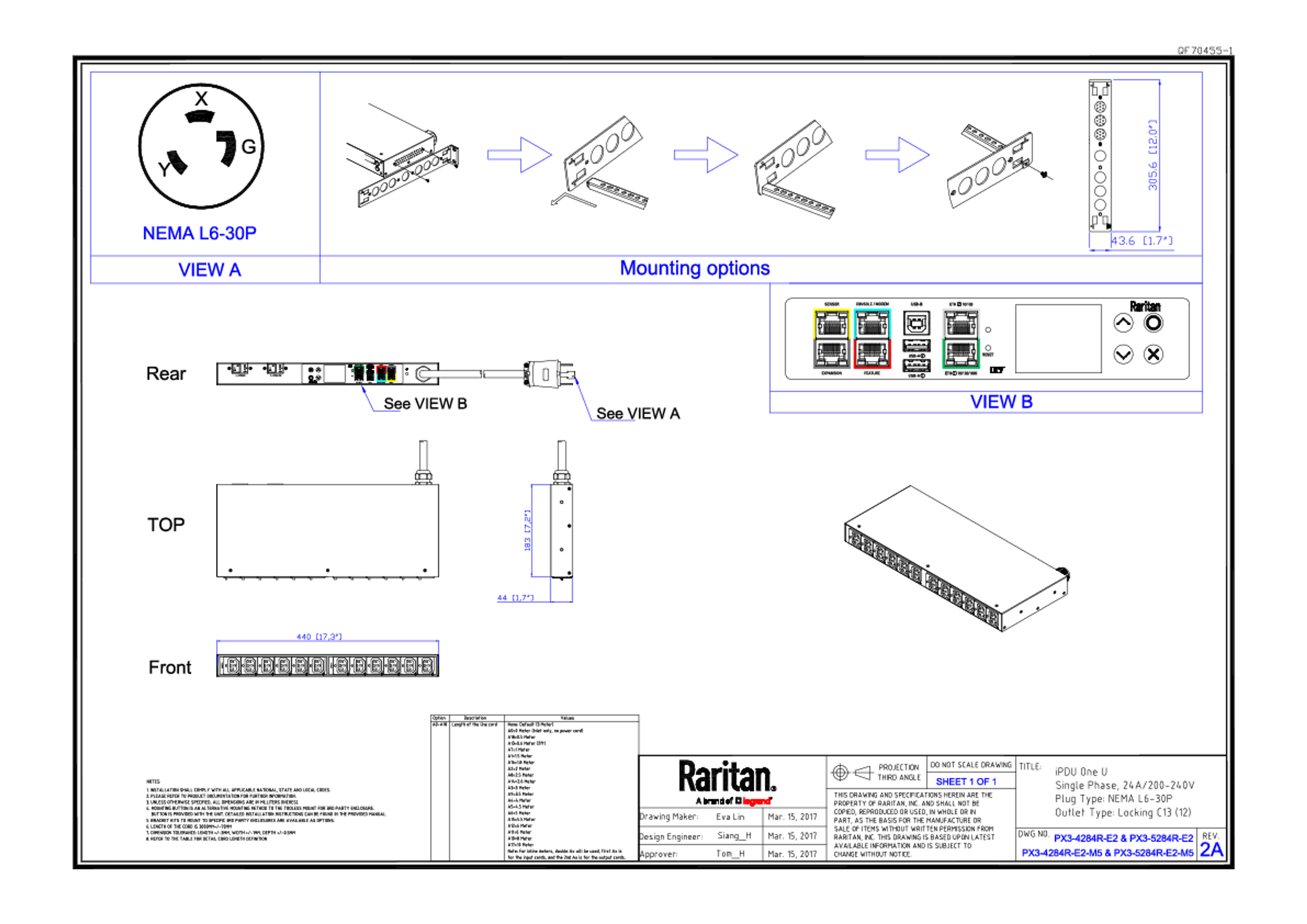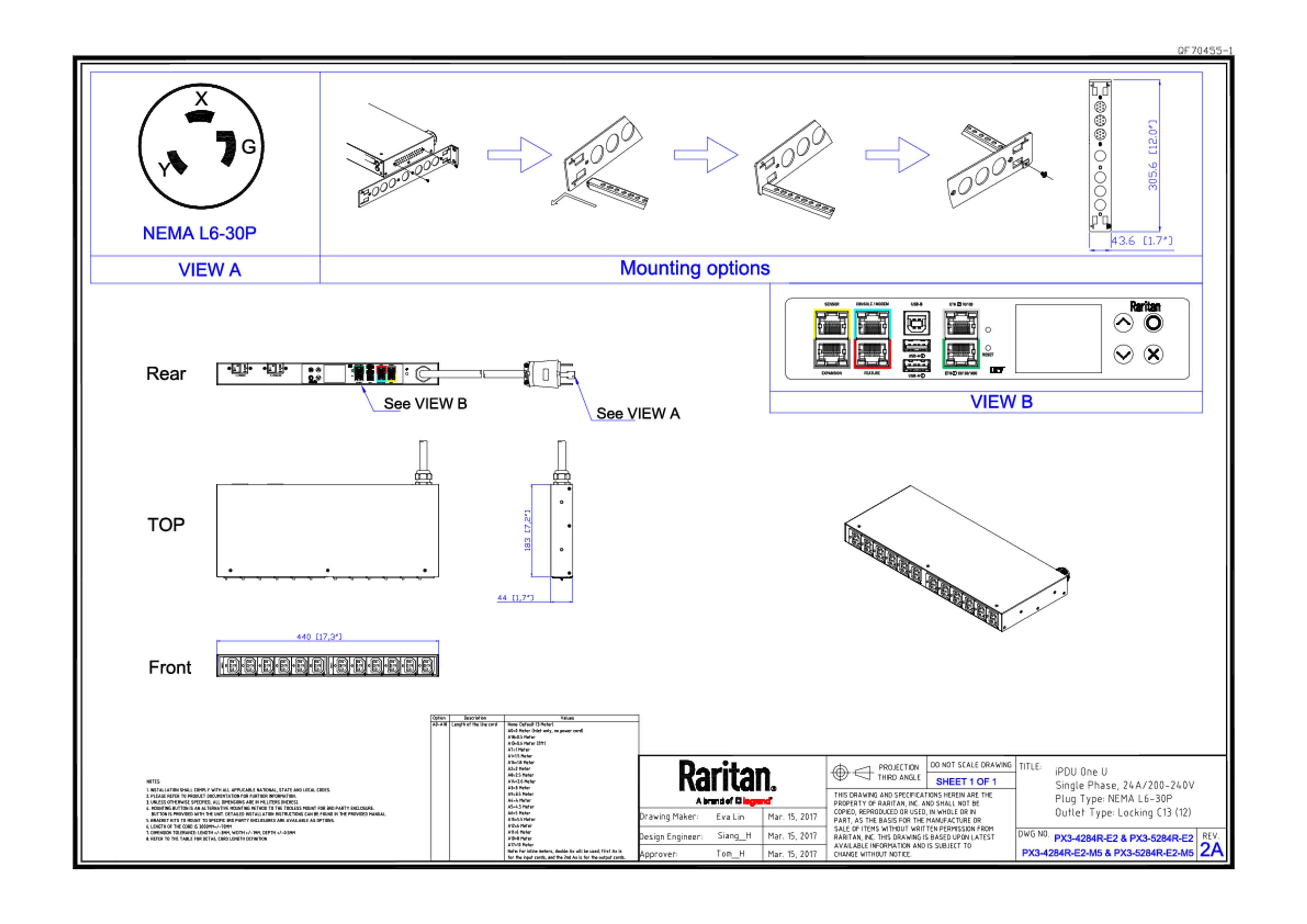 Raritan PX3-4284R-E2 1PH 208V AC 30A 12 outlets 1U