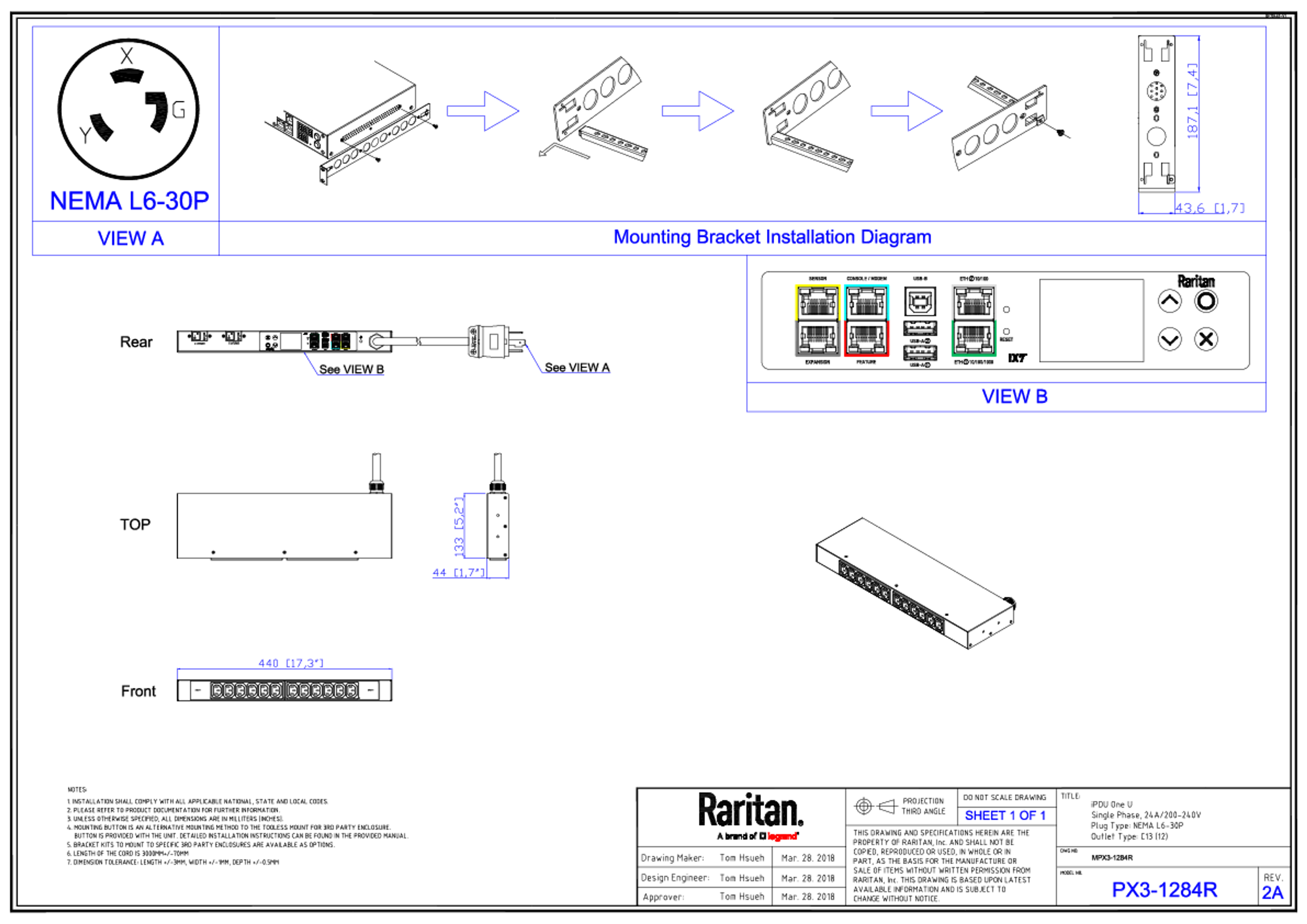 1PH, 208V AC, 30A (24A rated); 12 outlets: 12x C13; plug: NEMA L6-30P (Rear feed), 5.0kVA; Unit Metered, 1U horizontal PDU, SecureLock ready