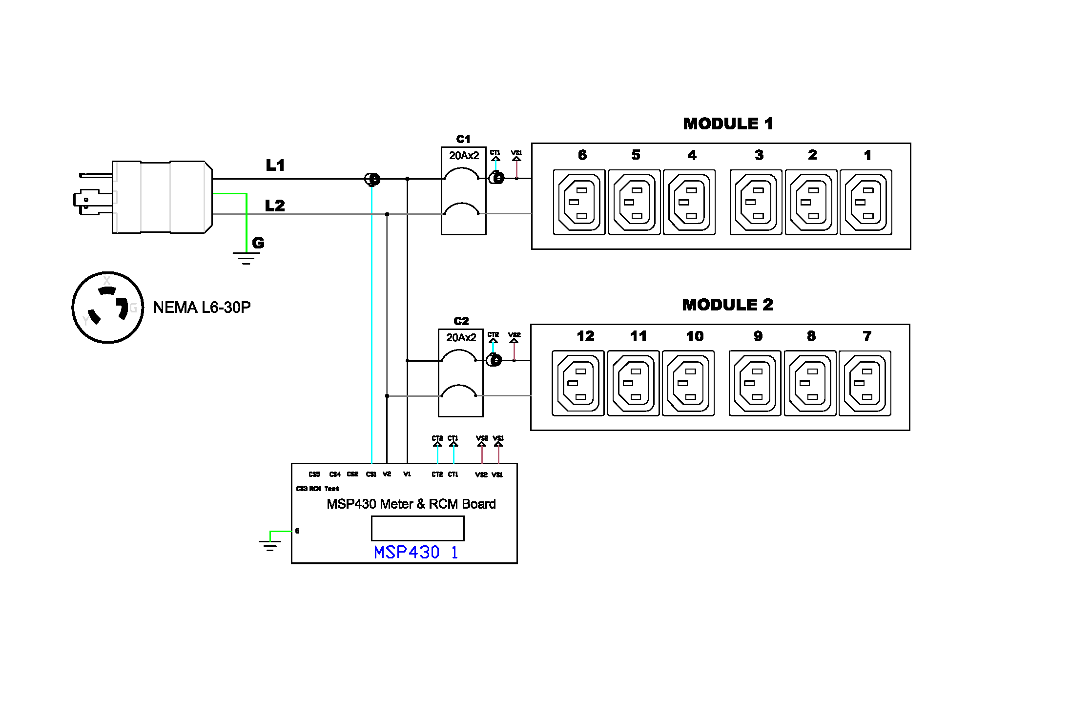 Monitored rack power distribution unit (1U [horizontal], 5kVA, 12 outlets). INPUT: 208v, 30a - NEMA L6-30P plug (2P3W); OUTPUT: 12@ C13, 6@ outlets; on 2@ 2-pole, 20a Overcurrent Protectors; FEATURES: Billing-Grade (+/- 1%) Energy Metering [kW, kVA, V, A, Power Factor] - per inlet, per breaker/fuse; Remote network monitoring via HTML, JSON-RPC, SSH, Telnet, MODBUS/TCP, and SNMPv3. Onboard embedded processor with minimum 536MHz clock speed, 16MB SPI Flash, and 64MB DDR2 RAM. Cascading upto 16 PDU's using single Ethernet or USB connection. Environmental monitoring [temp/humidity] capable – up to 32 sensors. Individual outlet numbers labeled on chassis. Automated deployment via TFTP, DHCP, SSH(CLI), or USB Flash Drives. WiFi Capable. USB Webcam Capable. iPad/iPhone/Android App. Dual 10/100/1000 Ethernet port. Breaker metering and alarming (0V detection). Max Dimensions 440mm x 133mm x 44mm (17.3in x 5.2in x 1.7in). Max Weight TBD. Maximum ambient temperature 60C at full load.