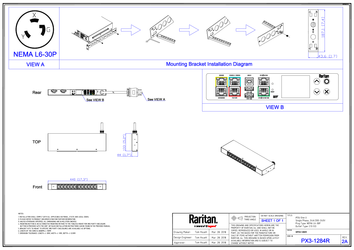 1PH, 208V AC, 30A (24A rated); 12 outlets: 12x C13; plug: NEMA L6-30P (Rear feed), 5.0kVA; Unit Metered, 1U horizontal PDU, SecureLock ready