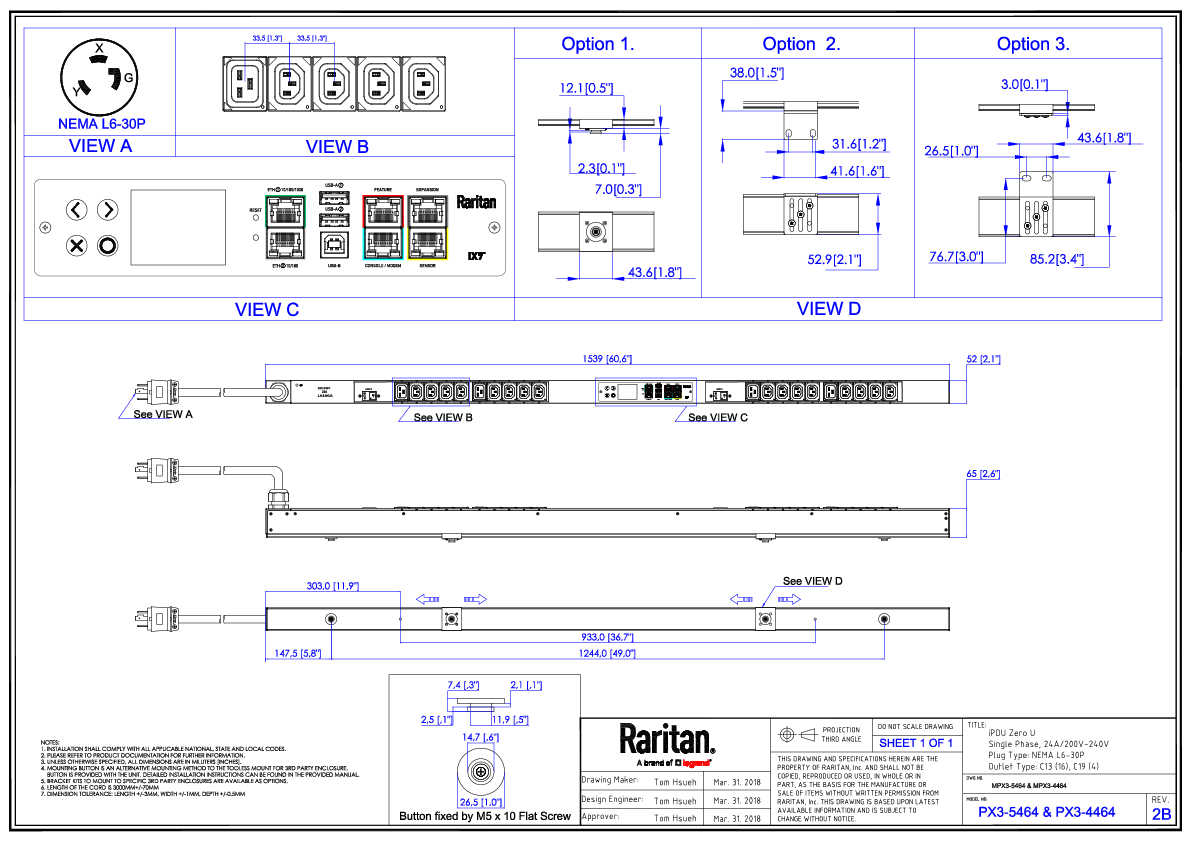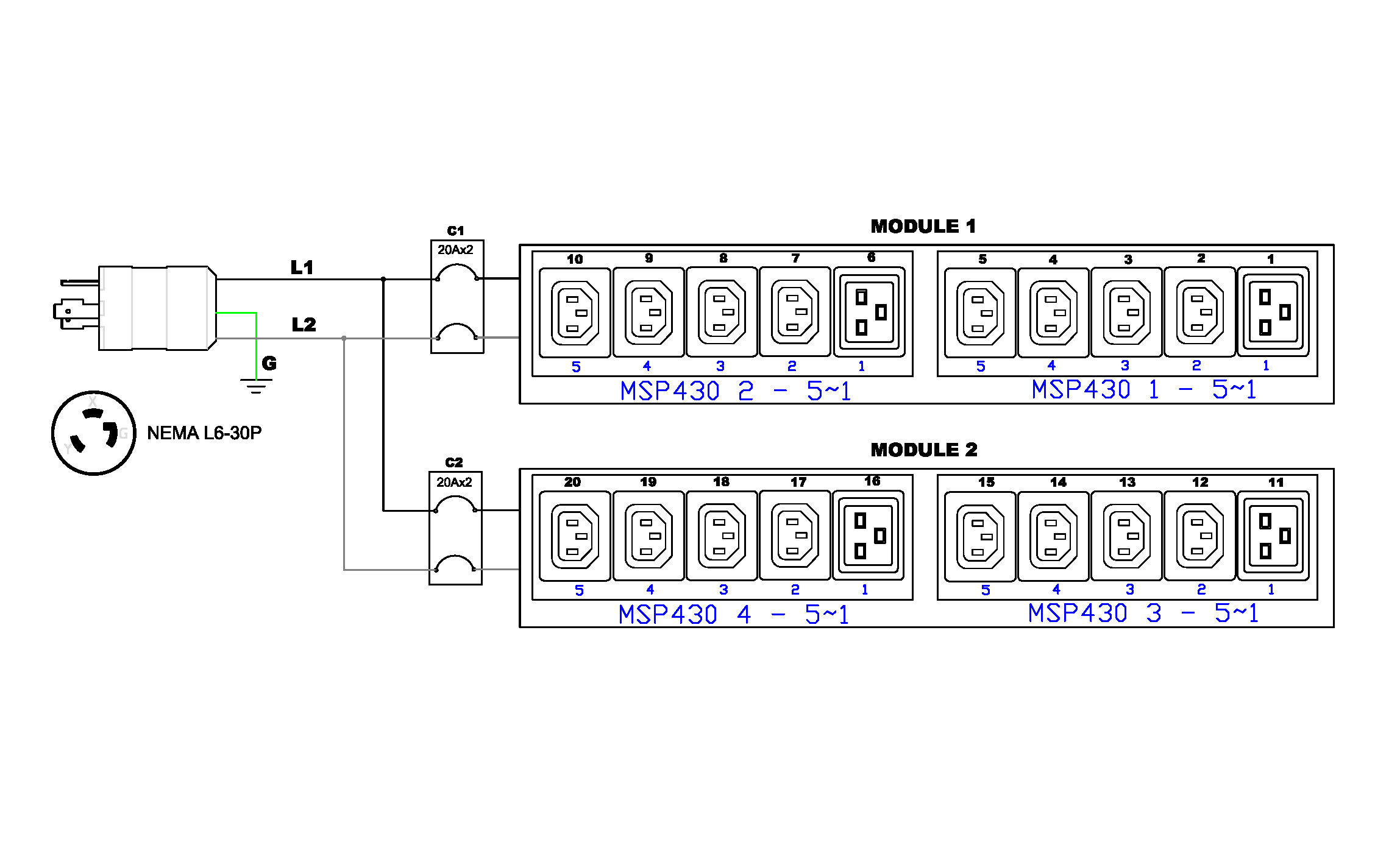 1PH, 208V AC, 30A (24A rated); 20 outlets: 16x C13, 4x C19; plug: NEMA L6-30P (Bottom-front feed), 5.0kVA; Outlet Metered/Switched, Zero U vertical PDU