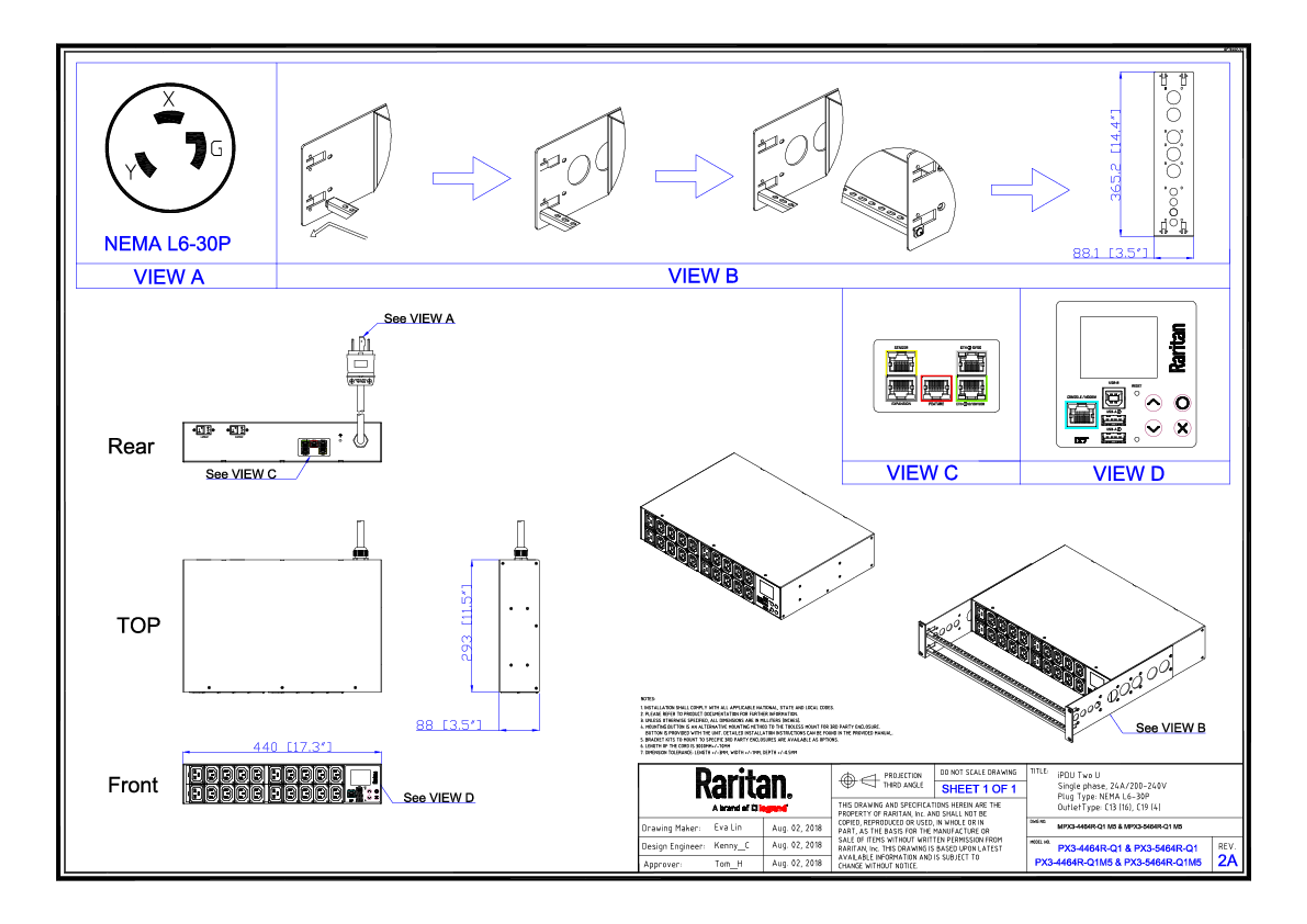Raritan PX3-4464R-Q11PH 208V AC 30A 2U PDU
