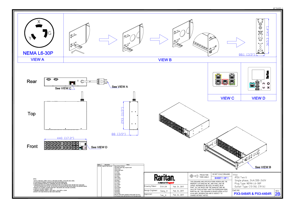 Raritan PX3-4464R 1PH 208V AC 30A 20 outlets 2U PDU