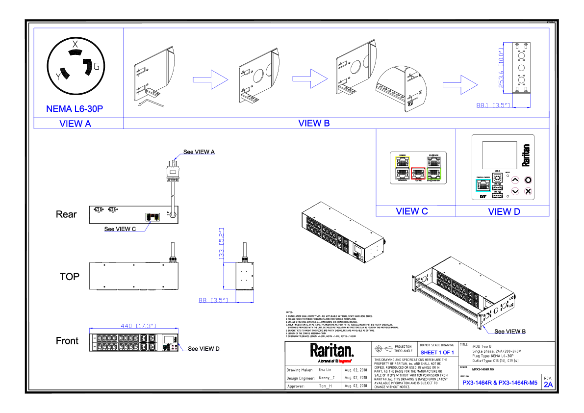 Raritan PX3-1464R 1PH 208V AC 30A 20 outlets 2U PDU