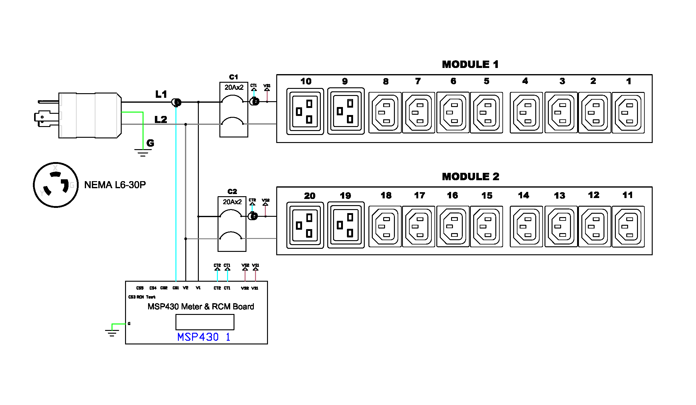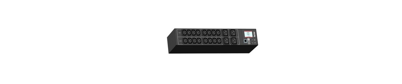 Monitored rack power distribution unit (2U [horizontal], 5kVA, 20 outlets). INPUT: 208v, 30a - NEMA L6-30P plug (2P3W); OUTPUT: 16@ C13 Locking, 4@ C19 Locking outlets; on 2@ 2-pole, 20a Overcurrent Protectors; FEATURES: Billing-Grade (+/- 1%) Energy Metering [kW, kVA, V, A, Power Factor] - per inlet, per breaker/fuse; Remote network monitoring via HTML, JSON-RPC, SSH, Telnet, MODBUS/TCP, and SNMPv3. Onboard embedded processor with minimum 536MHz clock speed, 16MB SPI Flash, and 64MB DDR2 RAM. Cascading upto 16 PDU's using single Ethernet or USB connection. Environmental monitoring [temp/humidity] capable – up to 32 sensors. Individual outlet numbers labeled on chassis. Automated deployment via TFTP, DHCP, SSH(CLI), or USB Flash Drives. WiFi Capable. USB Webcam Capable. iPad/iPhone/Android App. Dual 10/100/1000 Ethernet port. Breaker metering and alarming (0V detection). Max Dimensions 440mm x 133mm x 88mm (17.3in x 5.2in x 3.5in). Max Weight 4.8 kg. Maximum ambient temperature 60C at full load.