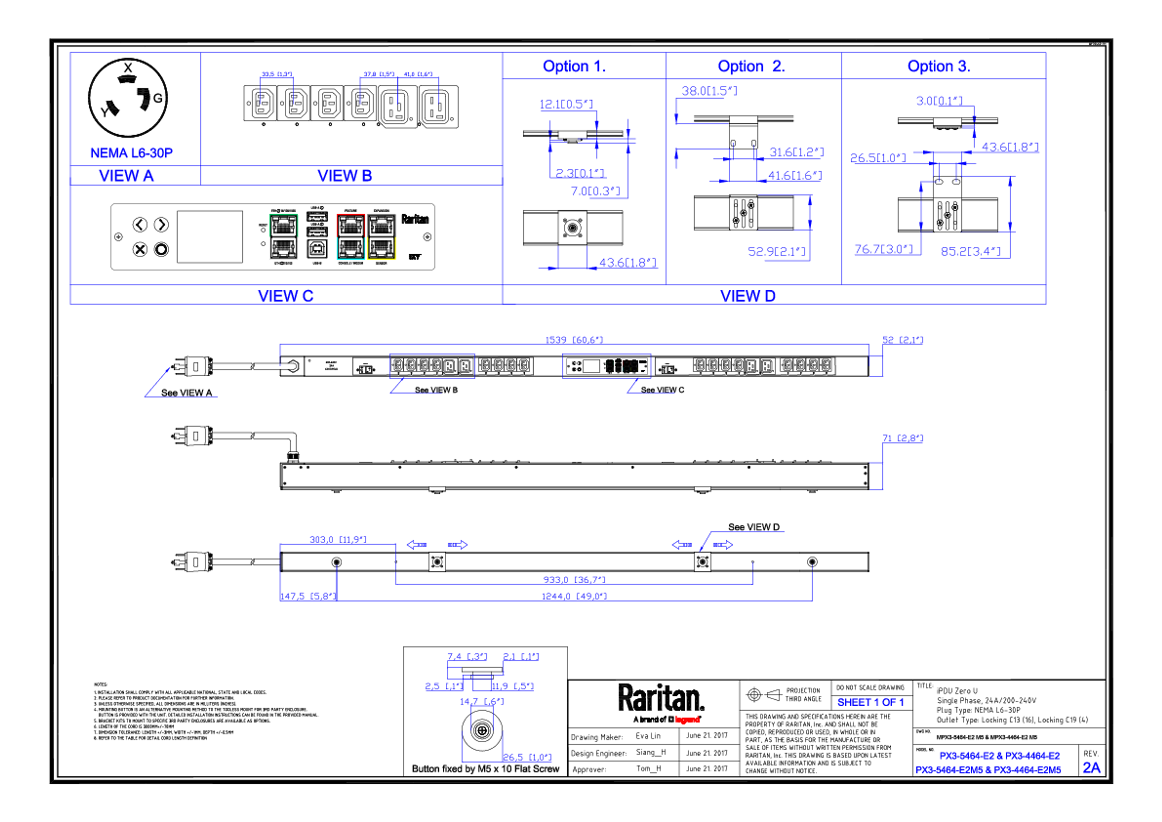Raritan PX3-5464-E2 1PH 208V AC 30A 20 outlets Zero U