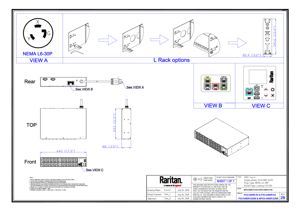 Raritan PX3-4460R-E2 1PH 208V AC 30A 20 outlets 2U