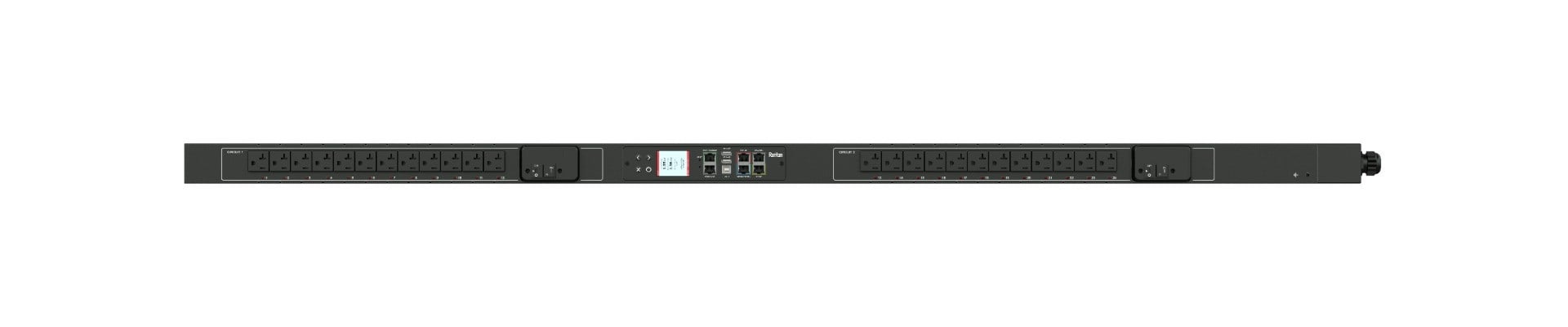 Color, matrix LCD display : Voltage, current, or active power (per line, per breaker, or per receptacle / outlet); Alarms; Configuration information (name, ratings, IP / Networking information). Auto-flip orientation