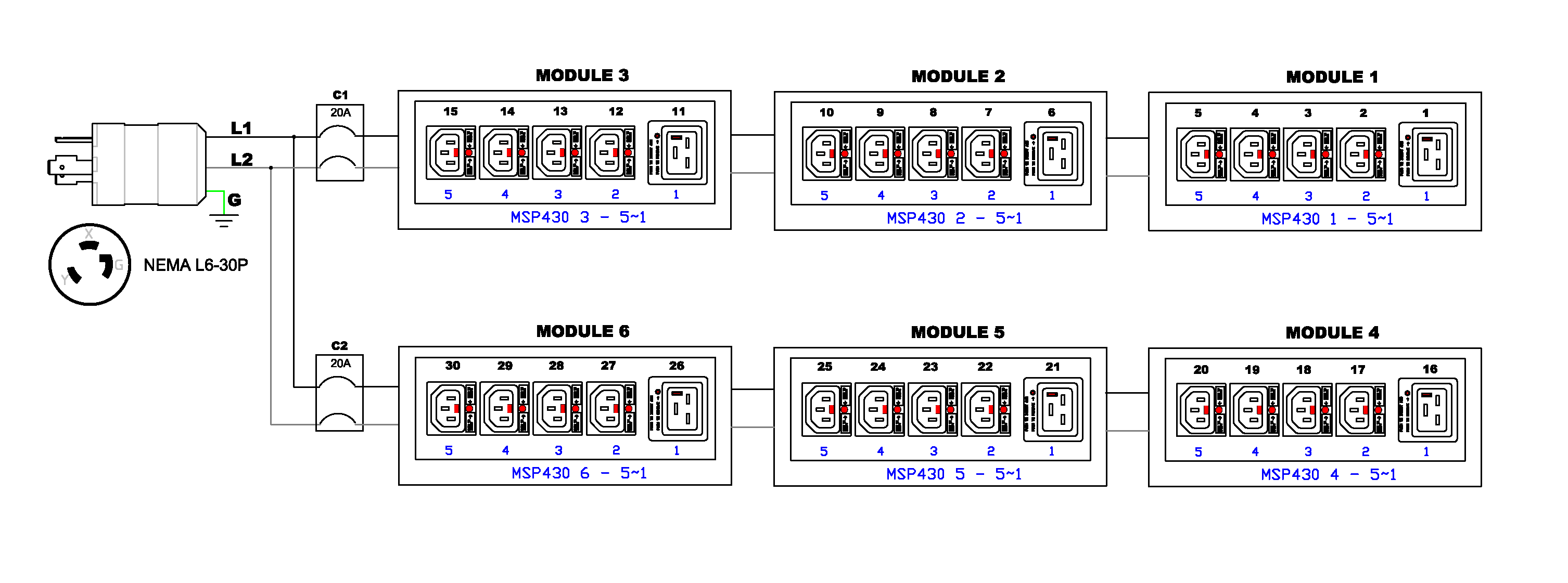 (6) IEC320 C19 Locking