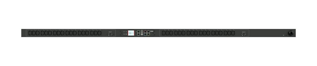 Monitored and switched rack power distribution unit (0U [vertical], 5kVA, 36 outlets). INPUT: 208v, 30a - NEMA L6-30P plug (2P3W); OUTPUT: 30@ C13, 6@ C19 outlets; on 2@ 2-pole, 20a Overcurrent Protectors; FEATURES: Billing-Grade (+/- 1%) Energy Metering [kW, kVA, V, A, Power Factor] - per inlet, per breaker/fuse, per outlet; Remote network monitoring via HTML, JSON-RPC, SSH, Telnet, MODBUS/TCP, and SNMPv3. Onboard embedded processor with minimum 536MHz clock speed, 16MB SPI Flash, and 64MB DDR2 RAM. Cascading upto 16 PDU's using single Ethernet or USB connection. Environmental monitoring [temp/humidity] capable – up to 32 sensors. Individual outlet numbers labeled on chassis. Automated deployment via TFTP, DHCP, SSH(CLI), or USB Flash Drives. WiFi Capable. USB Webcam Capable. iPad/iPhone/Android App. Dual 10/100/1000 Ethernet port. Tri-color status LED per receptacle. Breaker metering and alarming (0V detection). Max Dimensions 52mm x 65mm x 1780mm (2.1in x 2.6in x 70.1in). Max Weight 6.5 kg. Maximum ambient temperature 60C at full load.
