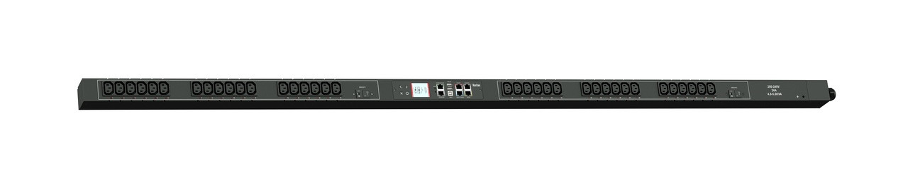 Monitored and switched rack power distribution unit (0U [vertical], 5kVA, 36 outlets). INPUT: 208v, 30a - NEMA L6-30P plug (2P3W); OUTPUT: 36@ C13 outlets; on 2@ 2-pole, 20a Overcurrent Protectors; FEATURES: Billing-Grade (+/- 1%) Energy Metering [kW, kVA, V, A, Power Factor] - per inlet, per breaker/fuse, per outlet; Remote network monitoring via HTML, JSON-RPC, SSH, Telnet, MODBUS/TCP, and SNMPv3. Onboard embedded processor with minimum 536MHz clock speed, 16MB SPI Flash, and 64MB DDR2 RAM. Cascading upto 16 PDU's using single Ethernet or USB connection. Environmental monitoring [temp/humidity] capable – up to 32 sensors. Individual outlet numbers labeled on chassis. Automated deployment via TFTP, DHCP, SSH(CLI), or USB Flash Drives. WiFi Capable. USB Webcam Capable. iPad/iPhone/Android App. Dual 10/100/1000 Ethernet port. Tri-color status LED per receptacle. Breaker metering and alarming (0V detection). Max Dimensions 52mm x 65mm x 1780mm (2.1in x 2.6in x 70.1in). Max Weight TBD. Maximum ambient temperature 60C at full load.