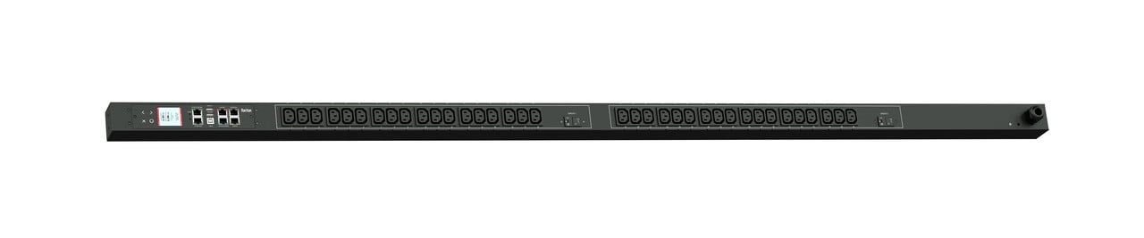 Monitored rack power distribution unit (0U [vertical], 5kVA, 36 outlets). INPUT: 208v, 30a - NEMA L6-30P plug (2P3W); OUTPUT: 36@ C13 outlets; on 2@ 2-pole, 20a Overcurrent Protectors; FEATURES: Billing-Grade (+/- 1%) Energy Metering [kW, kVA, V, A, Power Factor] - per inlet, per breaker/fuse; Remote network monitoring via HTML, JSON-RPC, SSH, Telnet, MODBUS/TCP, and SNMPv3. Onboard embedded processor with minimum 536MHz clock speed, 16MB SPI Flash, and 64MB DDR2 RAM. Cascading upto 16 PDU's using single Ethernet or USB connection. Environmental monitoring [temp/humidity] capable – up to 32 sensors. Individual outlet numbers labeled on chassis. Automated deployment via TFTP, DHCP, SSH(CLI), or USB Flash Drives. WiFi Capable. USB Webcam Capable. iPad/iPhone/Android App. Dual 10/100/1000 Ethernet port. Breaker metering and alarming (0V detection). Max Dimensions 52mm x 55mm x 1780mm (2.1in x 2.2in x 70.1in). Max Weight 6.5 kg. Maximum ambient temperature 60C at full load.
