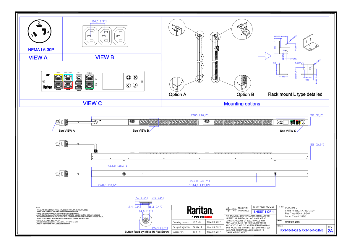 1PH, 208V AC, 30A (24A rated); 36 outlets: 36x C13; plug: NEMA L6-30P (Bottom-front feed), 5.0kVA; Unit Metered, Zero U vertical PDU, SecureLock ready