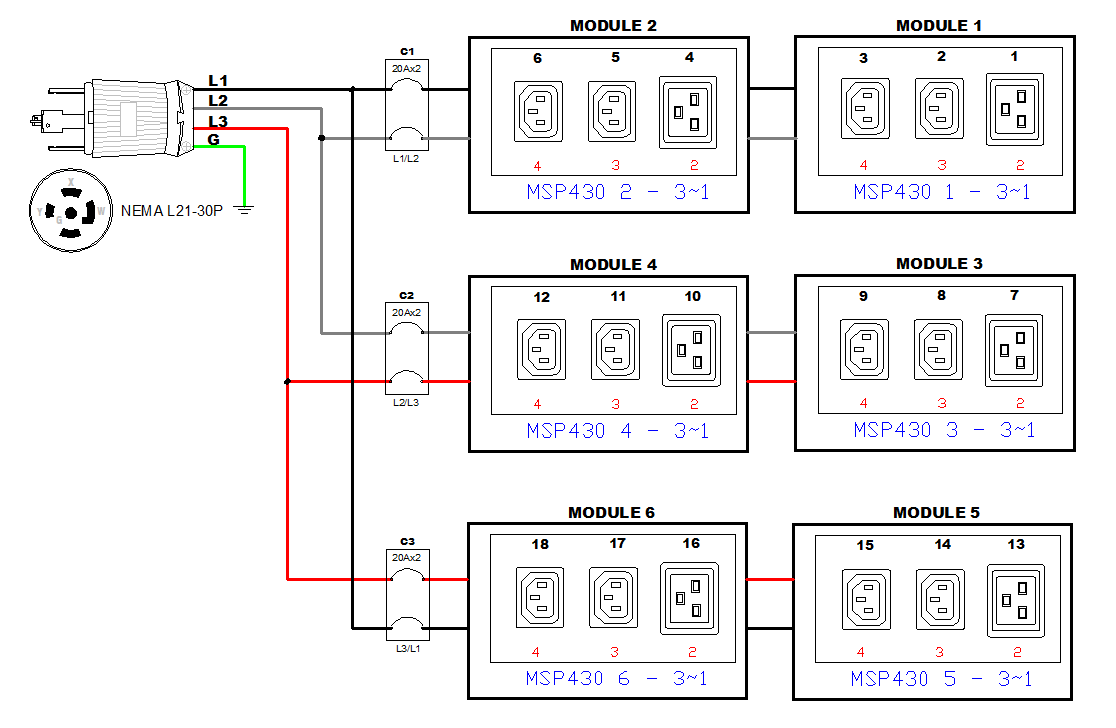 3PH, 208V AC, 30A (24A/PH rated); 18 outlets: 12x C13, 6x C19; plug: NEMA L21-30P (Wye Rear feed), 8.6kVA; Outlet Metered, 2U horizontal PDU,