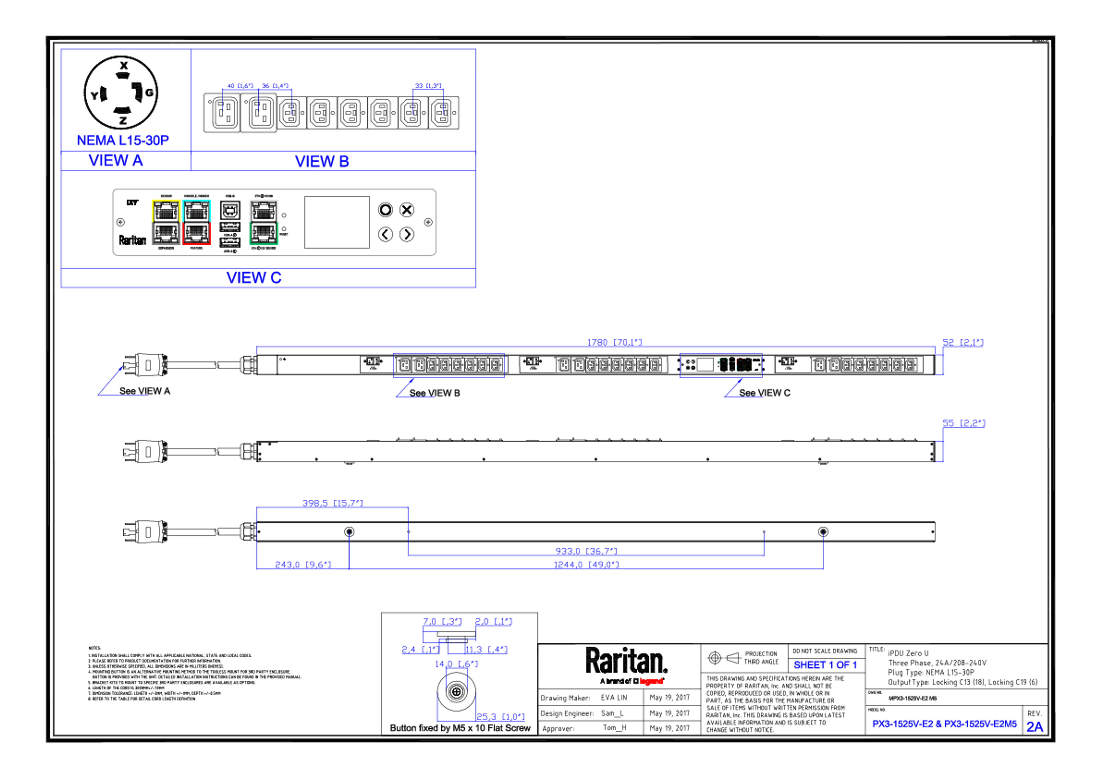 Raritan PX3-1525V-E2 3PH 208V AC 30A 24 outlets Zero U