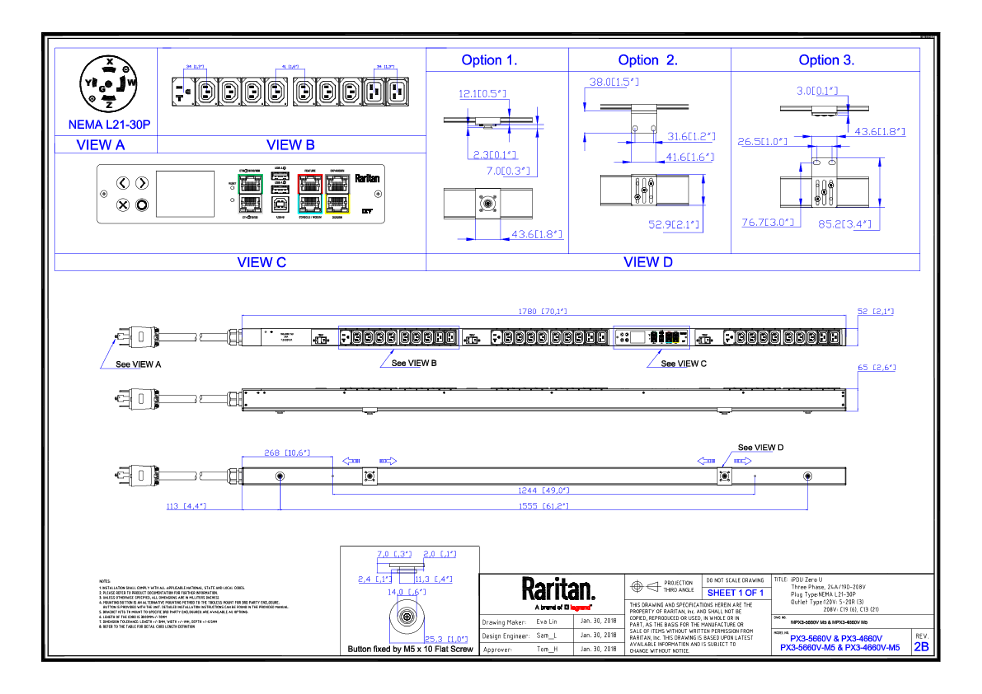 Raritan PX3-5660V 3PH 208V AC 30A 30 outlets Zero U PDU