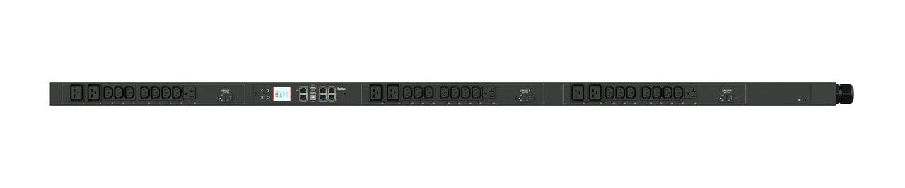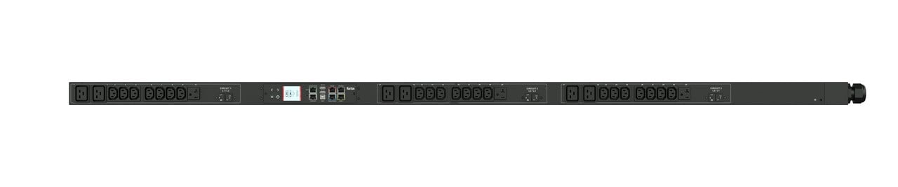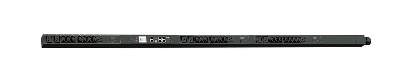 3PH, 208V AC, 30A (24A/PH rated); 30 outlets: 21x C13, 6x C19, 3x NEMA 5-20R; plug: NEMA L21-30P (Wye Bottom-bottom feed), 8.6kVA; Unit Metered, Zero U vertical PDU