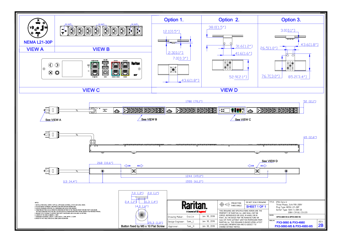 Raritan PX3-5660 3PH 208V AC 30A 30 outlets Zero U PDU