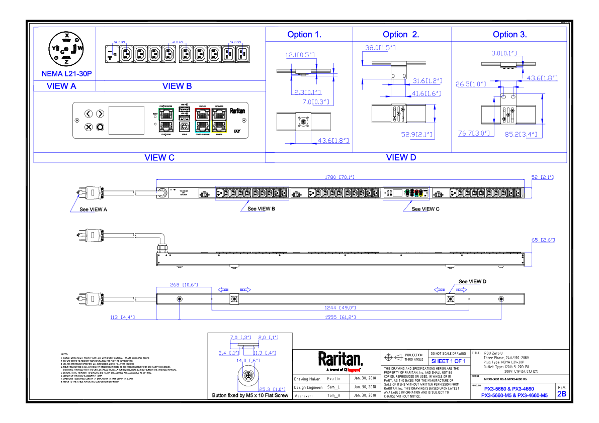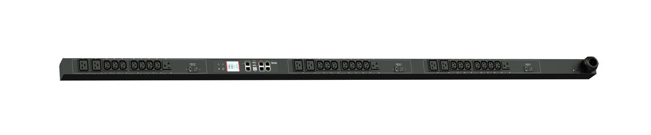 3PH, 208V AC, 30A (24A/PH rated); 30 outlets: 21x C13, 6x C19, 3x NEMA 5-20R; plug: NEMA L21-30P (Wye Bottom-front feed), 8.6kVA; Outlet Metered/Switched, Zero U vertical PDU