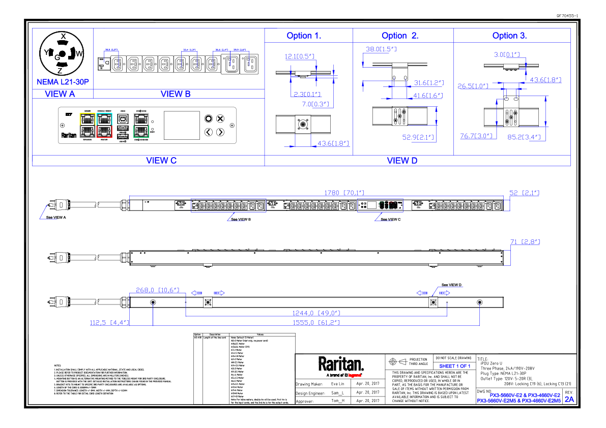 3PH, 208V AC, 30A (24A/PH rated); 30 outlets: 21x C13 Locking, 6x C19 Locking, 3x NEMA 5-20R; plug: NEMA L21-30P (Wye Bottom-bottom feed), 8.6kVA; Outlet Metered/Switched, Zero U