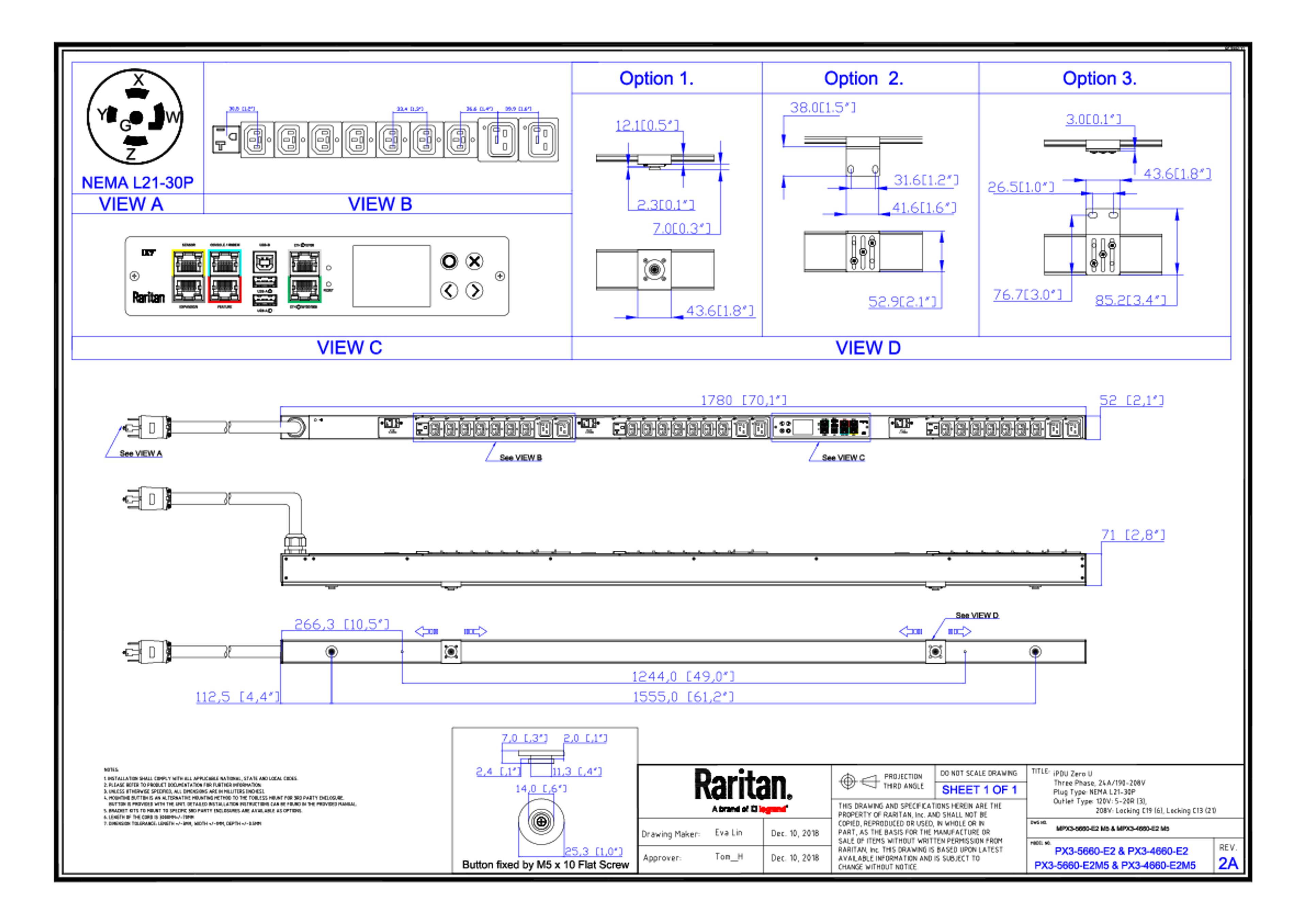 Raritan PX3-5660-E2 3PH 208V AC 30A 30 outlets Zero U PDU