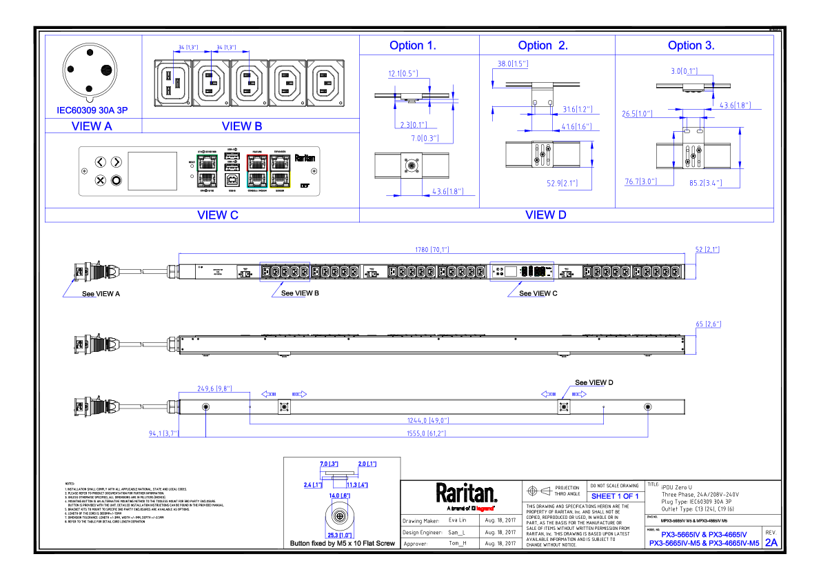 Raritan PX3-4665IV 3PH 208V AC 30A 30 outlets Zero U PDU