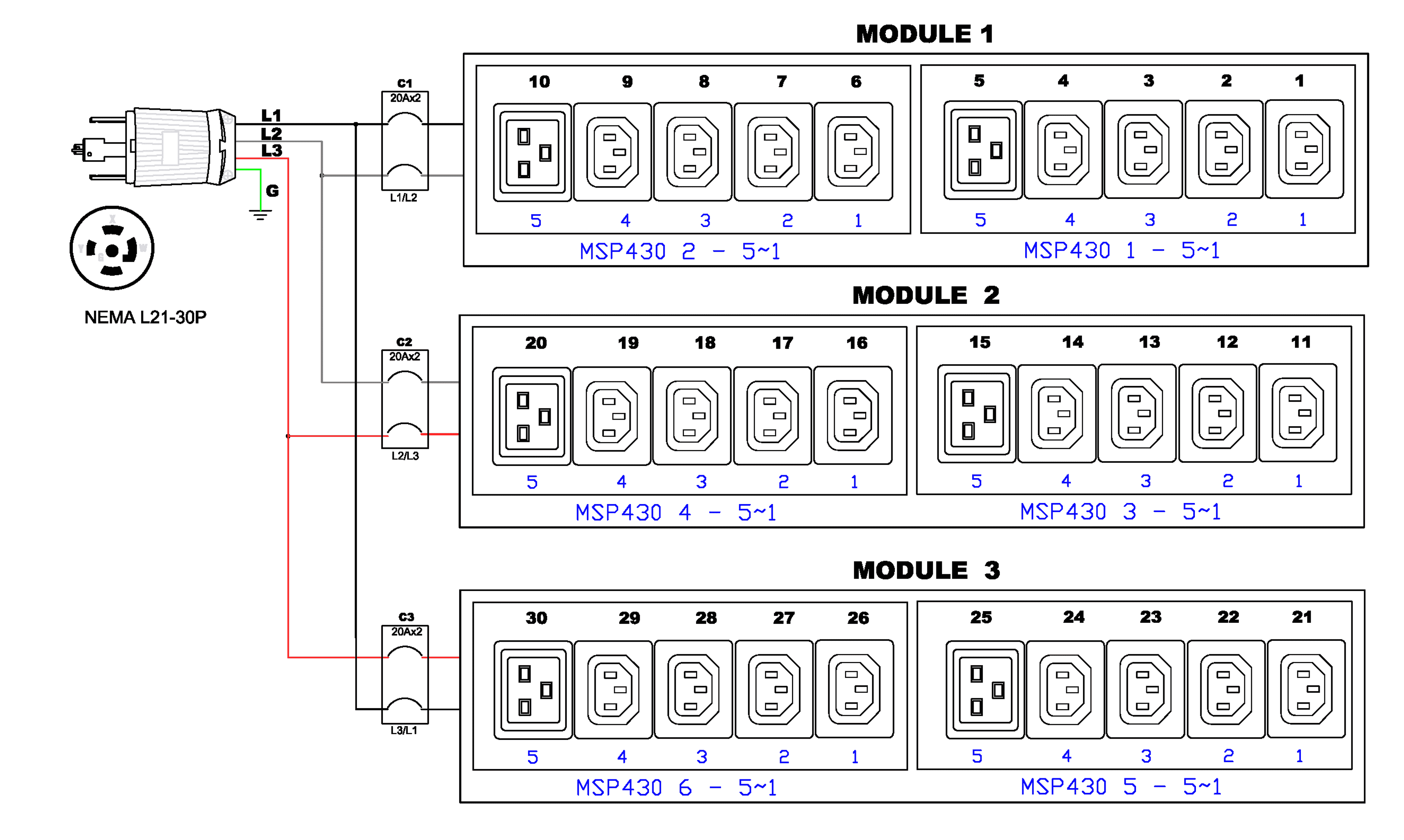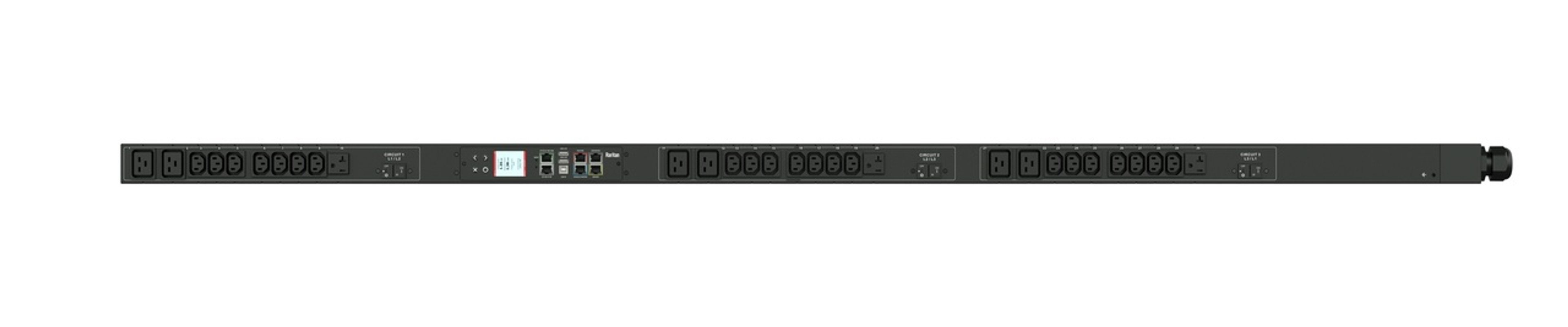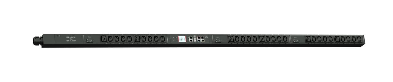 3PH, 208V AC, 30A (24A/PH rated); 30 outlets: 24x C13, 6x C19; plug: NEMA L21-30P (Wye Top-top feed), 8.6kVA; Outlet Metered/Switched, Zero U vertical PDU