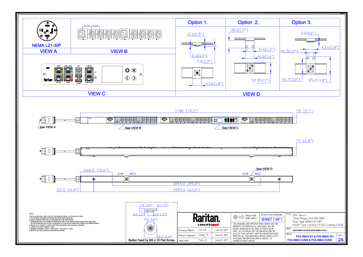 3PH, 208V AC, 30A (24A/PH rated); 30 outlets: 24x C13 Locking, 6x C19 Locking; plug: NEMA L21-30P (Wye Bottom-bottom feed), 8.6kVA; Outlet Metered, Zero U vertical PDU