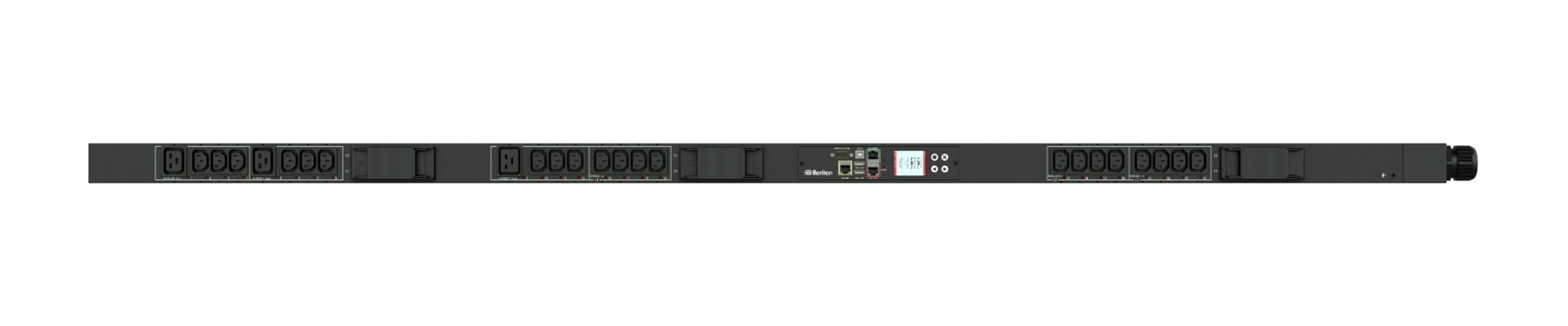 3PH, 208V AC, 30A (24A/PH rated); 30 outlets: 3x NEMA 5-20R, 21x C13, 6x C19; plug: NEMA L21-30P (Wye Bottom-bottom feed), 8.6kVA; Outlet Metered, Zero U vertical PDU
