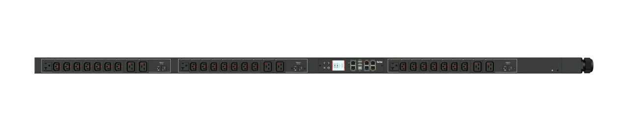3PH, 208V AC, 30A (24A/PH rated); 30 outlets: 3x NEMA 5-20R, 21x C13, 6x C19; plug: NEMA L21-30P (Wye Top-top feed), 8.6kVA; Outlet Metered, Zero U vertical PDU