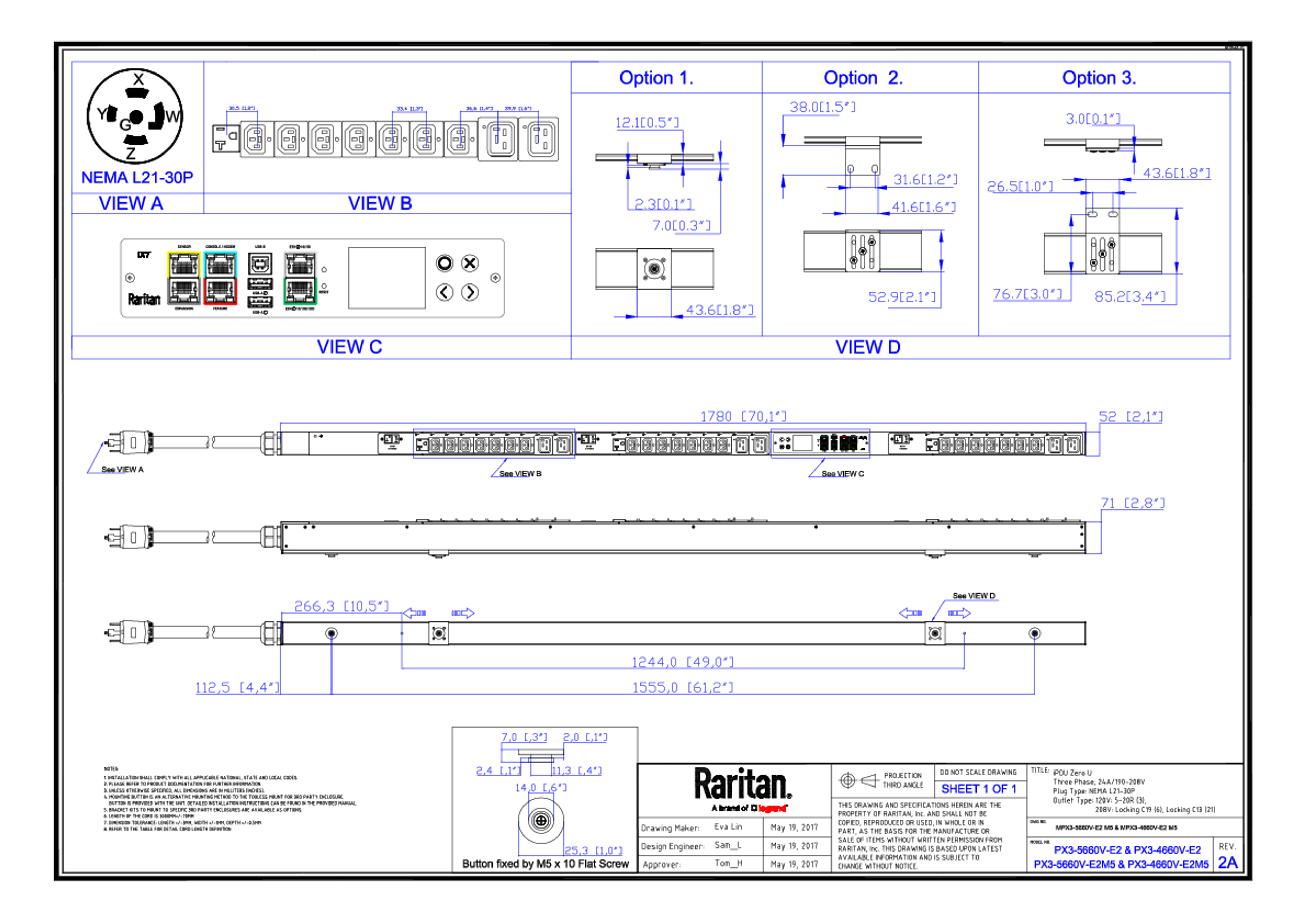 Raritan PX3-4660V-E2 3PH 208V AC 30A 30 outlets Zero U