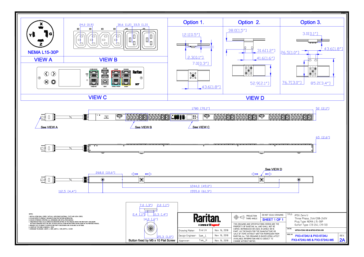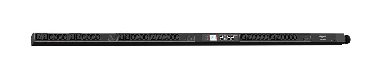3PH, 208V AC, 30A (24A/PH rated); 36 outlets: 24x C13, 12x C19 ; plug: NEMA L15-30P (Delta Top-top feed), 8.6kVA; Outlet Metered, Zero U vertical PDU