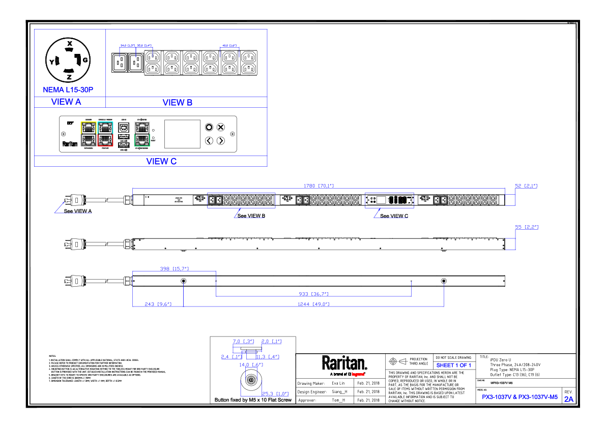 3PH, 208V AC, 30A (24A/PH rated); 42 outlets: 36x C13, 6x C19; plug: NEMA L15-30P (Delta Bottom-bottom feed), 8.6kVA; Unit Metered, Zero U vertical PDU
