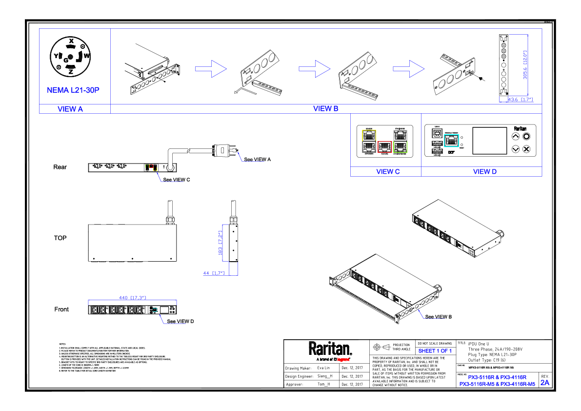 Raritan PX3-5116R 3PH 208V AC 30A 6 outlets 1U