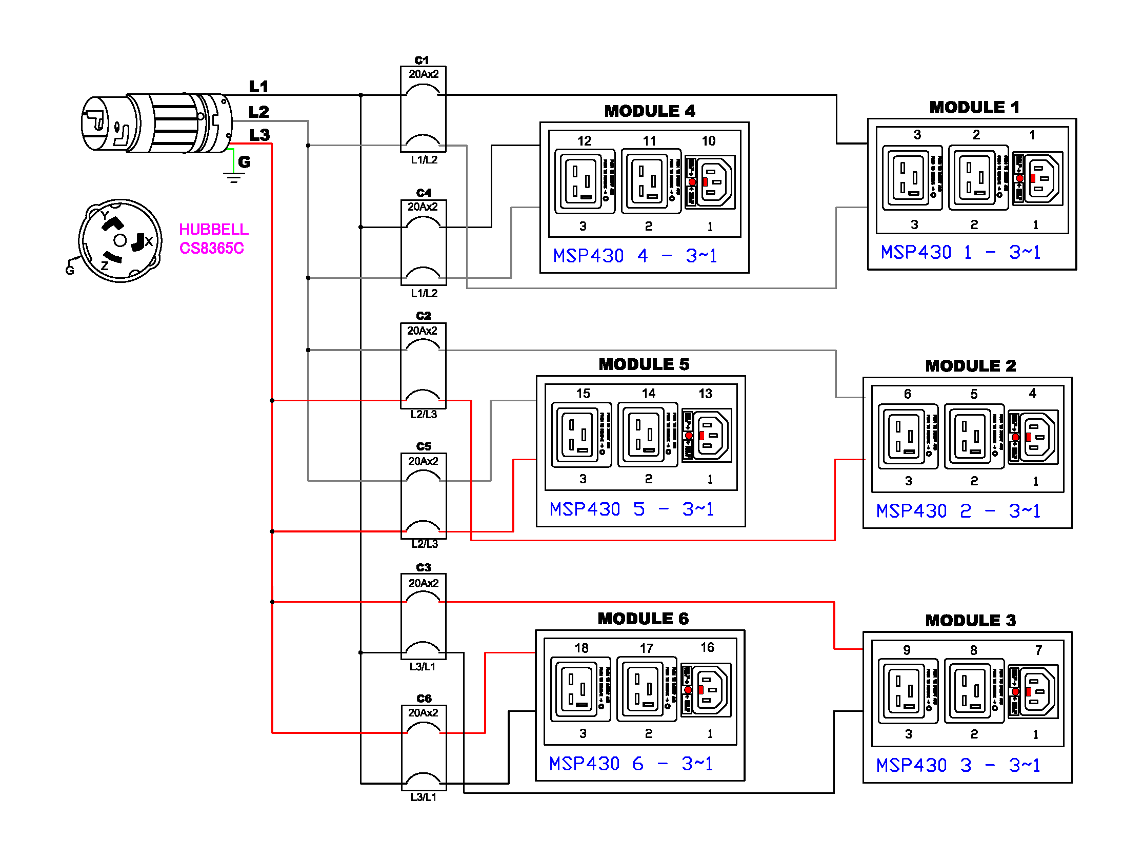 3PH, 208V AC, 50A (40A/PH rated); 18 outlets: 6x C13 Locking, 12x C19 Locking; plug: Hubbell CS8365C (Delta Bottom-front feed), 14.4kVA; Outlet Metered, Zero U vertical PDU