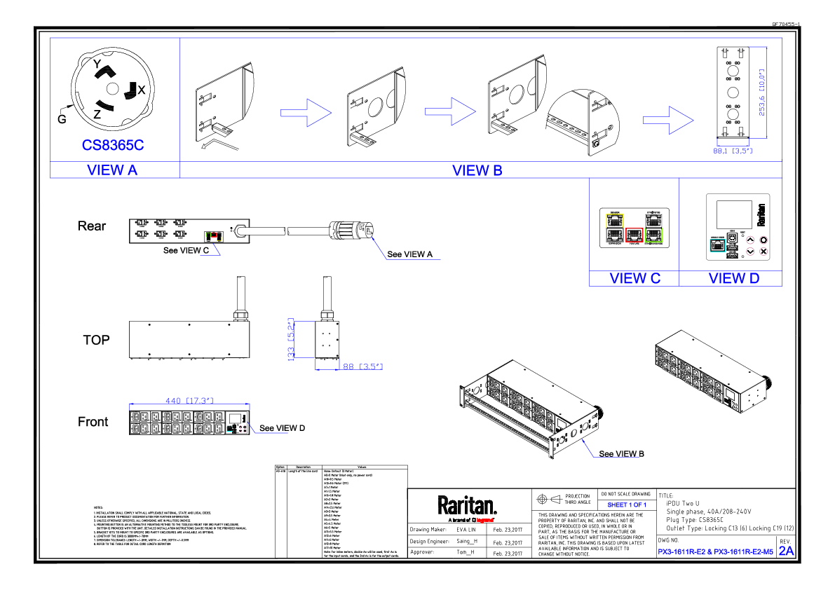 3PH, 208V AC, 50A (40A/PH rated); 18 outlets: 6x C13 Locking, 12x C19 Locking; plug: Hubbell CS8365C (Delta Rear feed), 14.4kVA; Unit Metered, 2U horizontal PDU