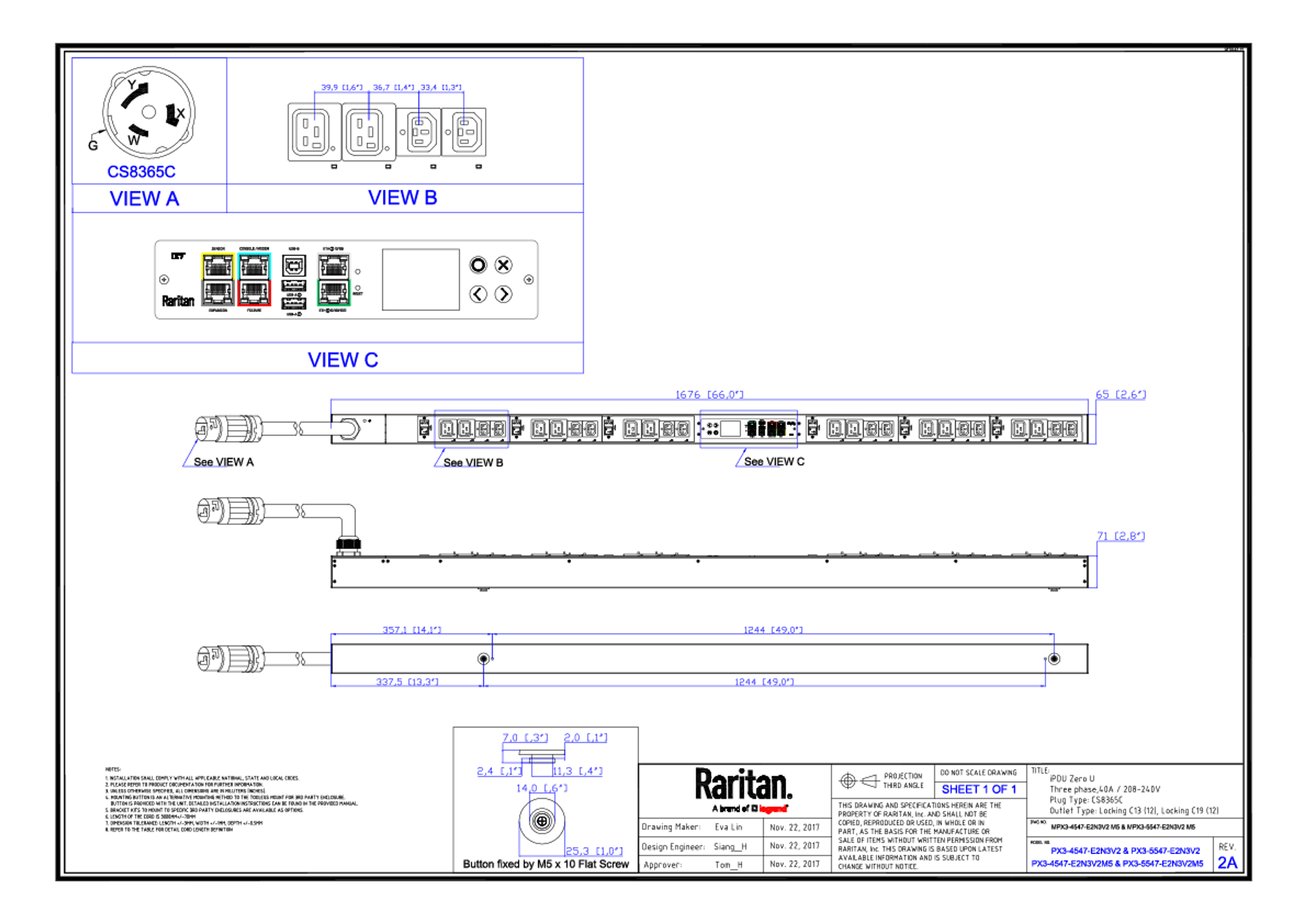 Raritan PX3-4547-E2N3V2 3PH 208V AC 50A 24 outlets Zero U