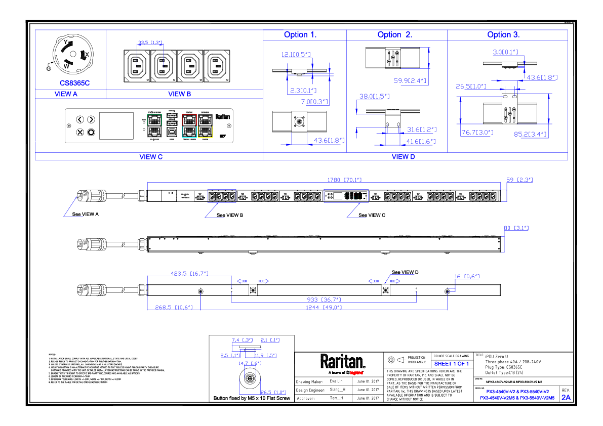 Monitored rack power distribution unit (0U [vertical], 14.4kVA, 24 outlets). INPUT: 208v (3-phase DELTA), 50a - CS8365C plug (3P4W); OUTPUT: 24@ C13 outlets; on 6@ 2-pole, 20a Overcurrent Protectors; FEATURES: Billing-Grade (+/- 1%) Energy Metering [kW, kVA, V, A, Power Factor] - per inlet, per breaker/fuse, per outlet; Remote network monitoring via HTML, JSON-RPC, SSH, Telnet, MODBUS/TCP, and SNMPv3. Onboard embedded processor with minimum 536MHz clock speed, 16MB SPI Flash, and 64MB DDR2 RAM. Cascading upto 16 PDU's using single Ethernet or USB connection. Environmental monitoring [temp/humidity] capable – up to 32 sensors. Individual outlet numbers labeled on chassis. Automated deployment via TFTP, DHCP, SSH(CLI), or USB Flash Drives. WiFi Capable. USB Webcam Capable. iPad/iPhone/Android App. Dual 10/100/1000 Ethernet port. Tri-color status LED per receptacle. Breaker metering and alarming (0V detection). Max Dimensions 59mm x 80mm x 1780mm (2.3in x 3.2in x 70.1in). Max Weight TBD. Maximum ambient temperature 60C at full load.