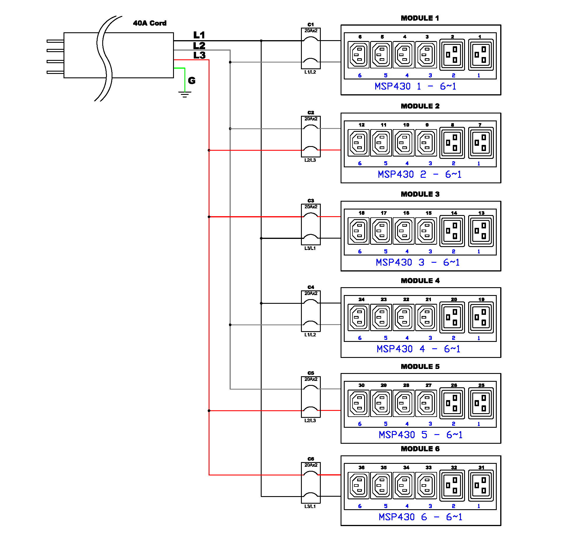 Monitored rack power distribution unit (0U [vertical], 14.4kVA, 36 outlets). INPUT: 208v (3-phase DELTA), 40a - Hardwired [Unterminated Cord, No Plug]; OUTPUT: 24@ C13, 12@ C19 outlets; on 6@ 2-pole, 20a Overcurrent Protectors; FEATURES: Billing-Grade (+/- 1%) Energy Metering [kW, kVA, V, A, Power Factor] - per inlet, per breaker/fuse, per outlet; Remote network monitoring via HTML, JSON-RPC, SSH, Telnet, MODBUS/TCP, and SNMPv3. Onboard embedded processor with minimum 536MHz clock speed, 16MB SPI Flash, and 64MB DDR2 RAM. Cascading upto 16 PDU's using single Ethernet or USB connection. Environmental monitoring [temp/humidity] capable – up to 32 sensors. Individual outlet numbers labeled on chassis. Automated deployment via TFTP, DHCP, SSH(CLI), or USB Flash Drives. WiFi Capable. USB Webcam Capable. iPad/iPhone/Android App. Dual 10/100/1000 Ethernet port. Tri-color status LED per receptacle. Breaker metering and alarming (0V detection). Max Dimensions 59mm x 80mm x 1981mm (2.3in x 3.1in x 78.0in). Max Weight TBD. Maximum ambient temperature 60C at full load.