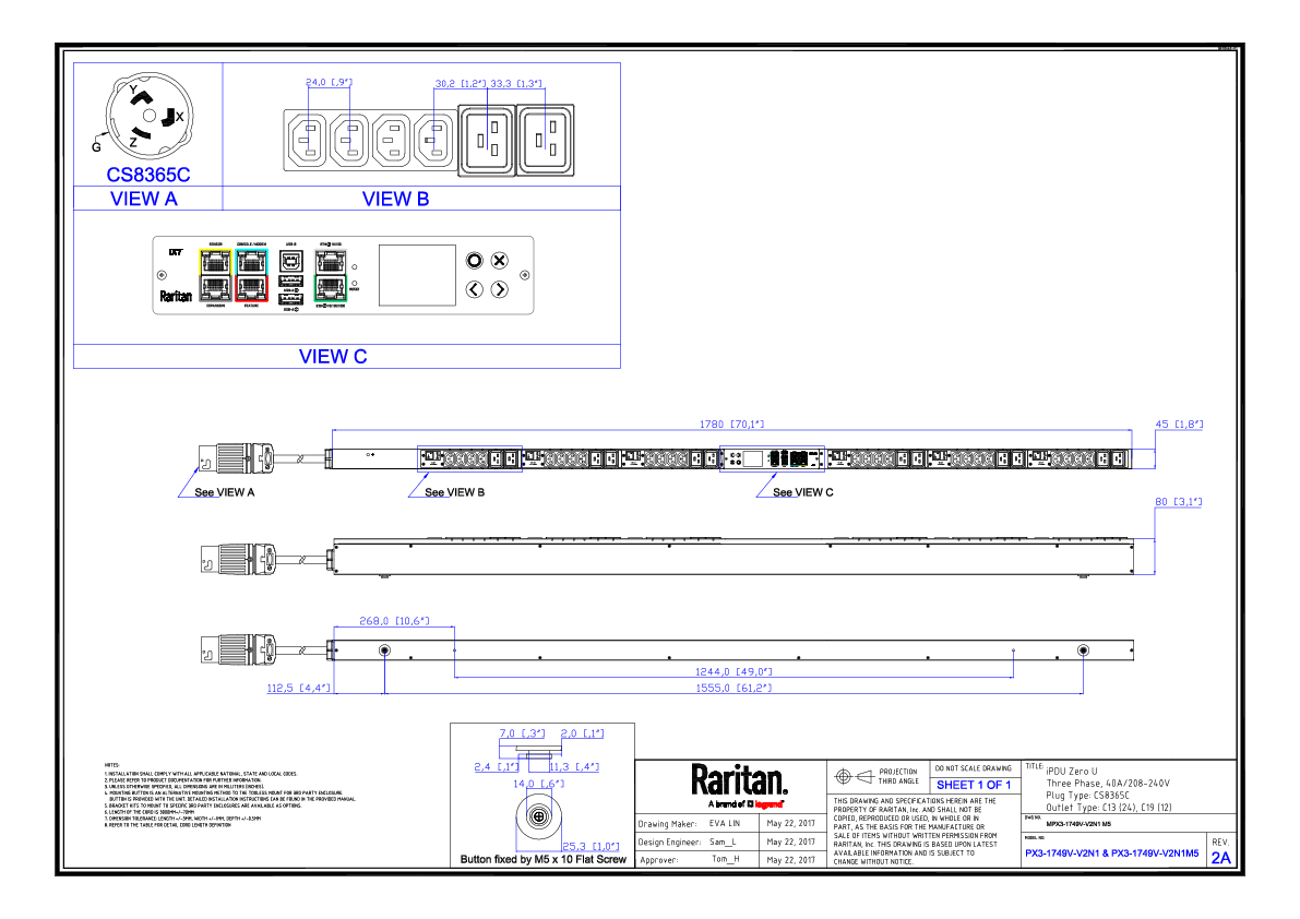 Raritan PX3-1749V-V2N1 3PH 208V AC 50A 36 outlets Zero U