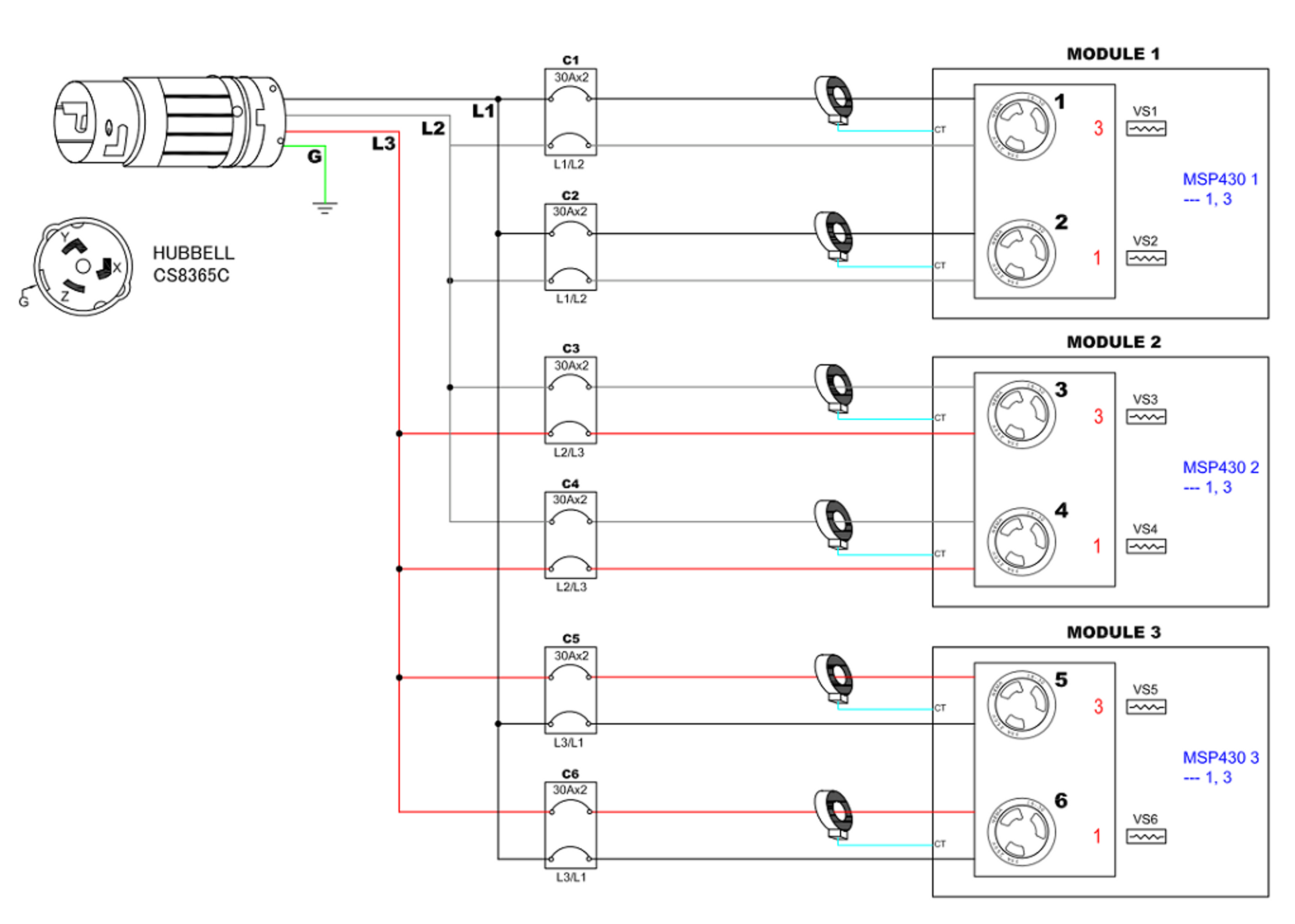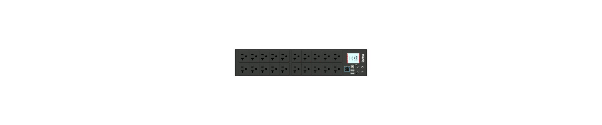 3PH, 208V AC, 50A (40A/PH rated); 6 outlets: 6x NEMA L6-30R; plug: CS8365C (Delta Rear feed), 14.4kVA; Outlet Metered, 2U horizontal PDU, high resolution color display