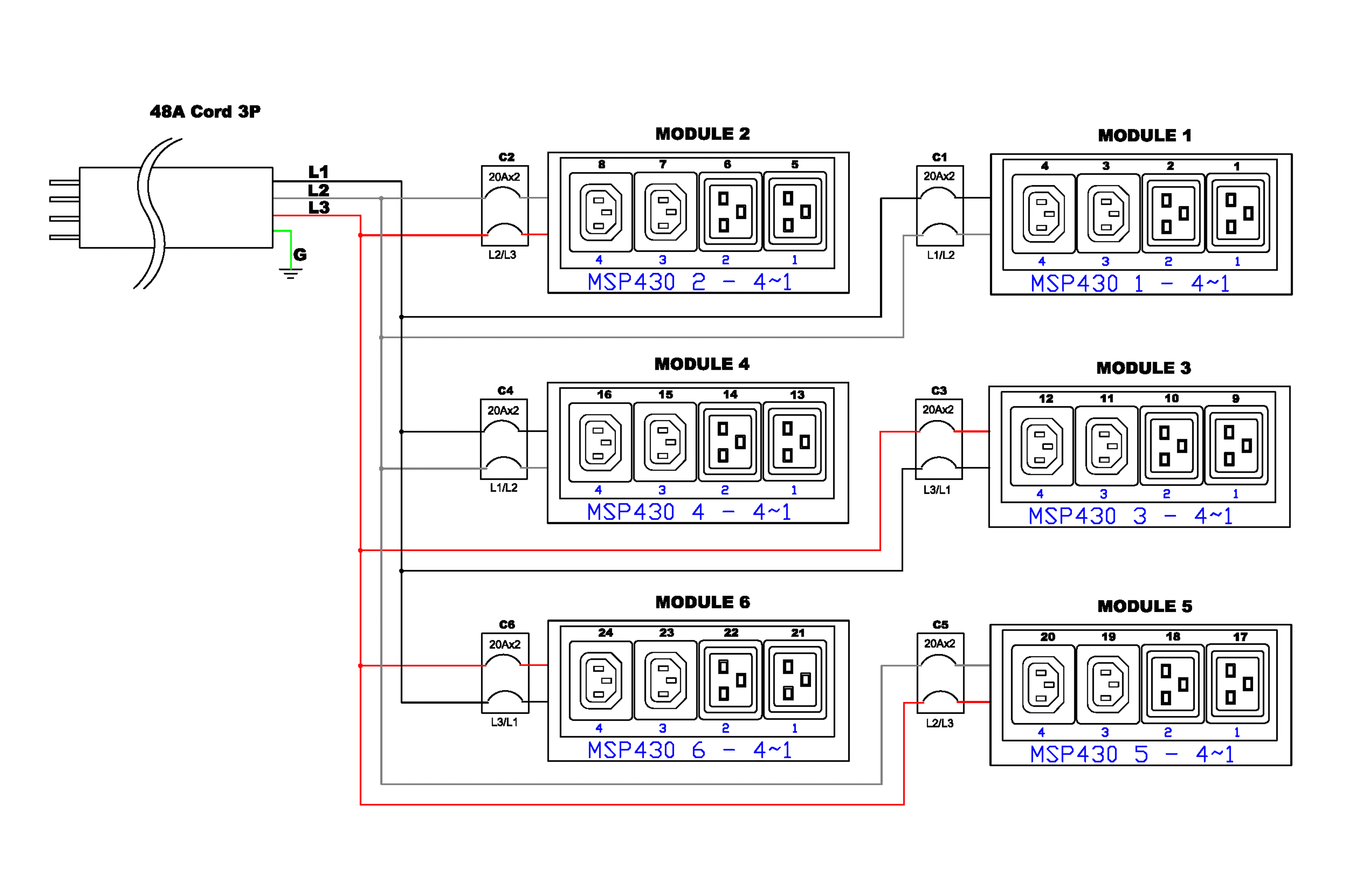 Monitored and switched rack power distribution unit (0U [vertical], 17.3kVA, 24 outlets). INPUT: 208v (3-phase DELTA), 48a - Hardwired [Unterminated Cord, No Plug]; OUTPUT: 12@ C13, 12@ C19 outlets; on 6@ 2-pole, 20a Overcurrent Protectors; FEATURES: Billing-Grade (+/- 1%) Energy Metering [kW, kVA, V, A, Power Factor] - per inlet, per breaker/fuse, per outlet; Remote network monitoring via HTML, JSON-RPC, SSH, Telnet, MODBUS/TCP, and SNMPv3. Onboard embedded processor with minimum 536MHz clock speed, 16MB SPI Flash, and 64MB DDR2 RAM. Cascading upto 16 PDU's using single Ethernet or USB connection. Environmental monitoring [temp/humidity] capable – up to 32 sensors. Individual outlet numbers labeled on chassis. Automated deployment via TFTP, DHCP, SSH(CLI), or USB Flash Drives. WiFi Capable. USB Webcam Capable. iPad/iPhone/Android App. Dual 10/100/1000 Ethernet port. Tri-color status LED per receptacle. Breaker metering and alarming (0V detection). Max Dimensions 59mm x 80mm x 1780mm (2.3in x 3.2in x 70.1in). Max Weight TBD. Maximum ambient temperature 60C at full load.