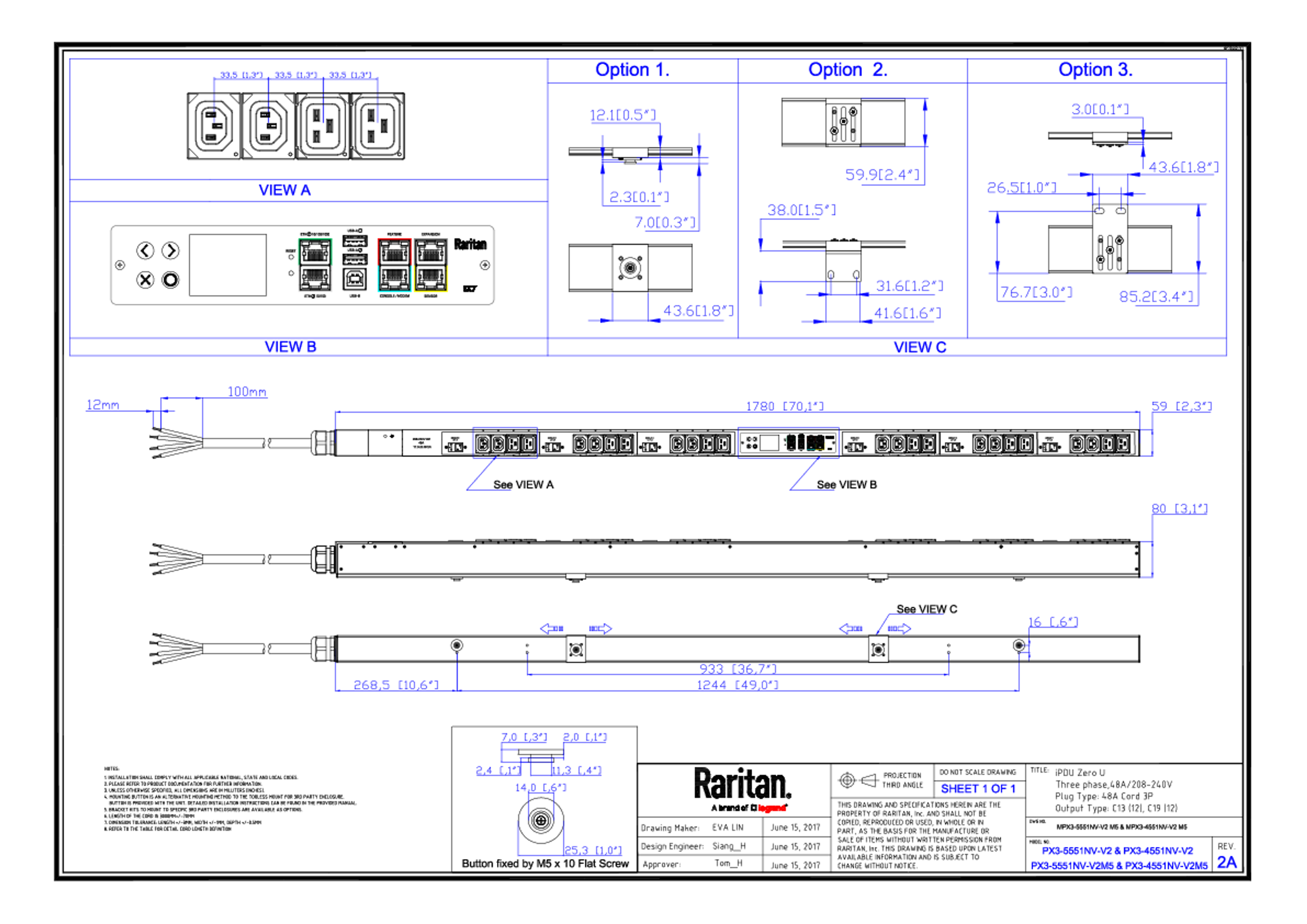 Raritan PX3-5551NV-V2 3PH 208V AC 60A 24 outlets Zero U
